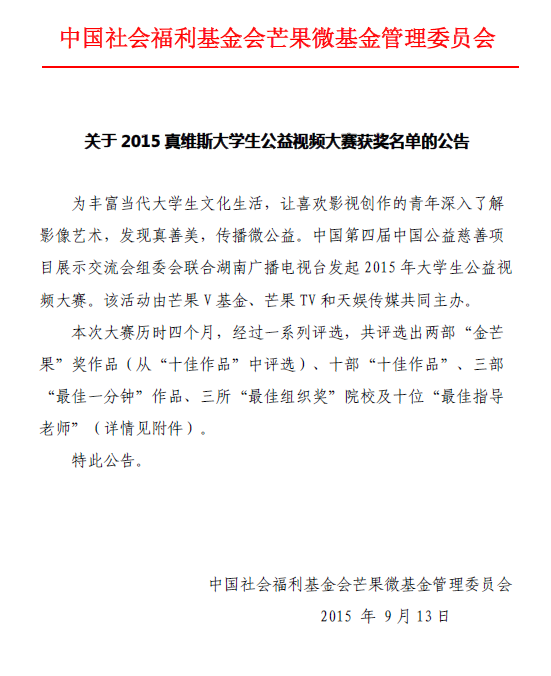 beat365平台官方网站学生作品《承诺》《遥远星球的孩子》以极高票数荣获由芒果V基金、芒果TV和天娱传媒共同主办的“2015大学生公益视频大赛”十佳作品,也是所有参赛高校中唯一有两部作品突围获“十佳”的高校。指导老师...