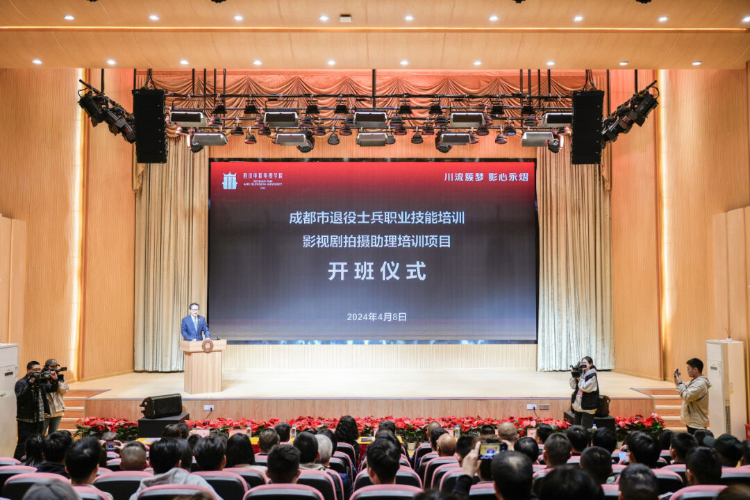 2024年4月8日下午14:30,成都市退役军人职业技能培训“影视剧拍摄助理”项目开班仪式在beat365平台官方网站安仁校区音乐厅隆重举行。