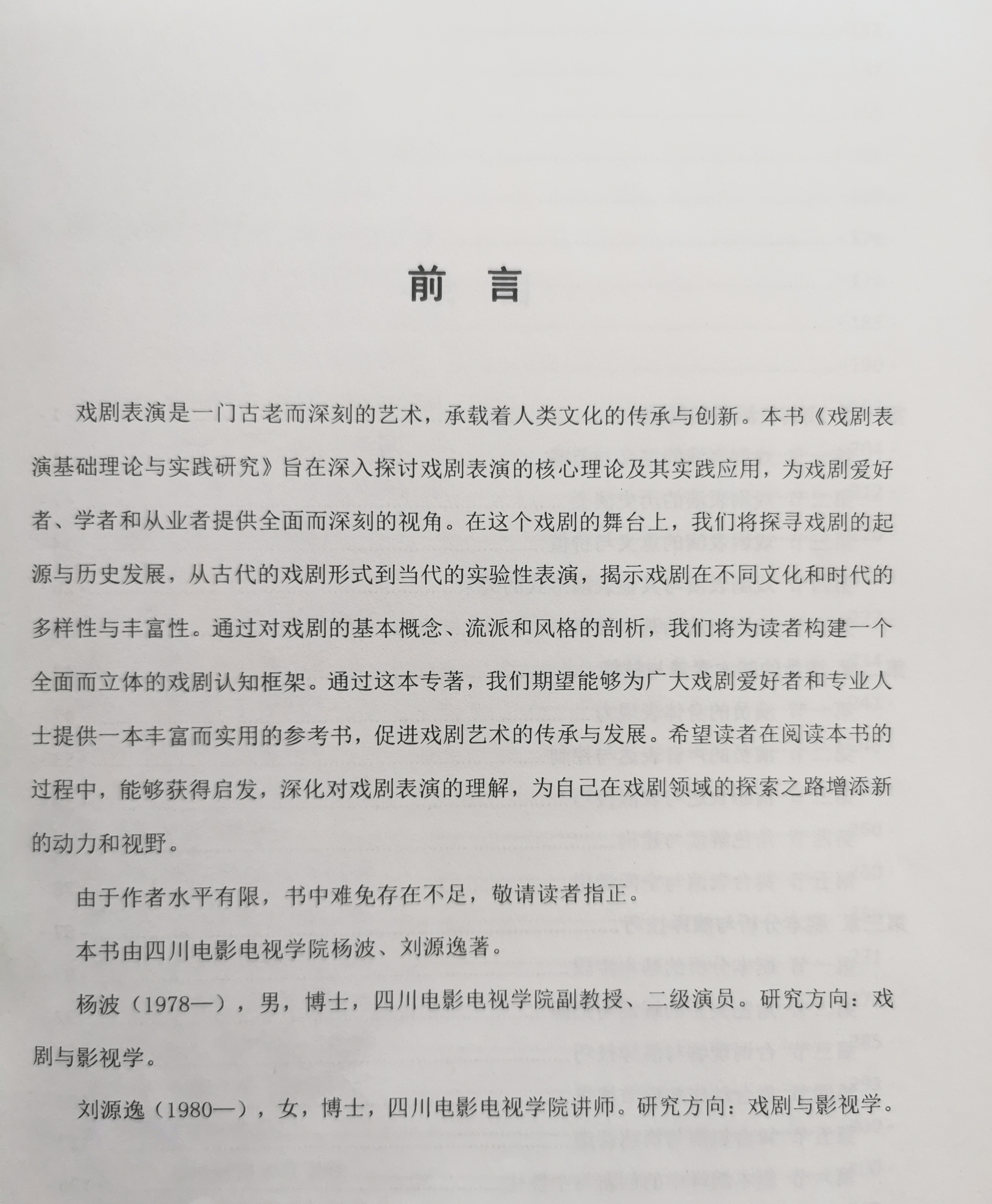 近日,我校电影学院表演系主任、博士杨波副教授联合表演系老师刘源逸博士共同撰写的专著《戏剧表演基础理论与实践研究》由中国农影音像出版社出版,该专著分为戏剧表演基础概述、演员的基本素养与技能、剧本分析与演绎技巧、戏剧表演的艺术要素、戏剧表演中的演员的身体与声音、戏剧排练与演出流程、戏剧评论与批评、戏剧教育与培训、戏剧跨文化表演与国际交流、未来戏剧表演的发展趋势共十章57节31万字。