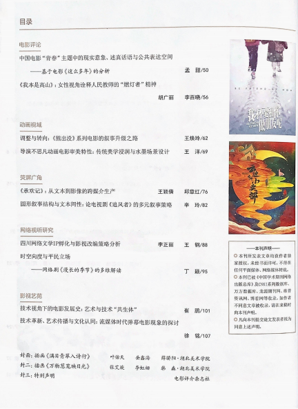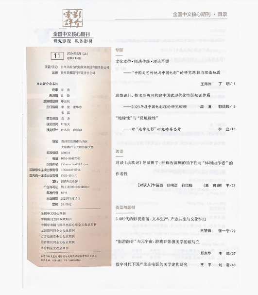 《电影评介》创刊于1979年,是一本在全国具有相当影响力、并具有海外发行权的电影专业刊物。创刊至今已经出版400期。单月最高发行量曾突破50万册,多次获得“全国影评工作先进集体”“贵州省优秀社科期刊”“贵州省报刊整体设计奖”以及中华人民共和国新闻出版总署授予的“双效”期刊等荣誉奖项。文章被国家新闻出版总署、维普网、万方数据库、知网数据库收录。主要栏目有:专家来稿、博士论坛、中国电影评论、外国电影评论、电影文学、电影理论、荧屏广角、影视教育、文化艺术等。主要内容包括:影视理论,影视文化,影视文艺,影视动画学,影视专题,影视管理,影视美学,影视文学,影视教育,影视布景,影视广告,影视产品营销,影视技术,影视服饰,影视效果设计,影视文献回顾,影视史研究,影视资料赏析,影视潮流分析,影视产业分析,影视前沿,影视人物采访,影视产业或创作与传播学,电脑,数码,美术,音乐,戏曲,舞蹈,艺术,新闻,传媒、传播学、哲学、社会、文化等各学科的交叉研究。北京大学《中文核心期刊要目总览》来源期刊:1992年(第一版),1996年(第二版),2004年版,2014年版,2017年版,2020年版,2023年版。(2023版)复合影响因子:0.29(2023版)综合影响因子:0.069,期刊荣誉:社科双效期刊。