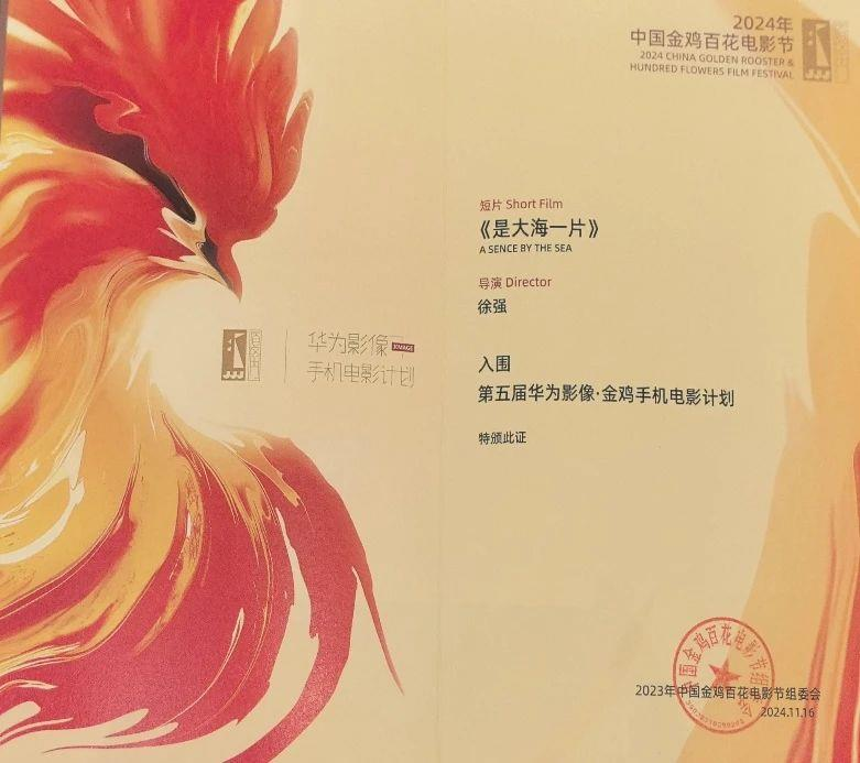 电影学院综合实训短片《是大海一片》入围第五届华为影像•金鸡手机电影计划。