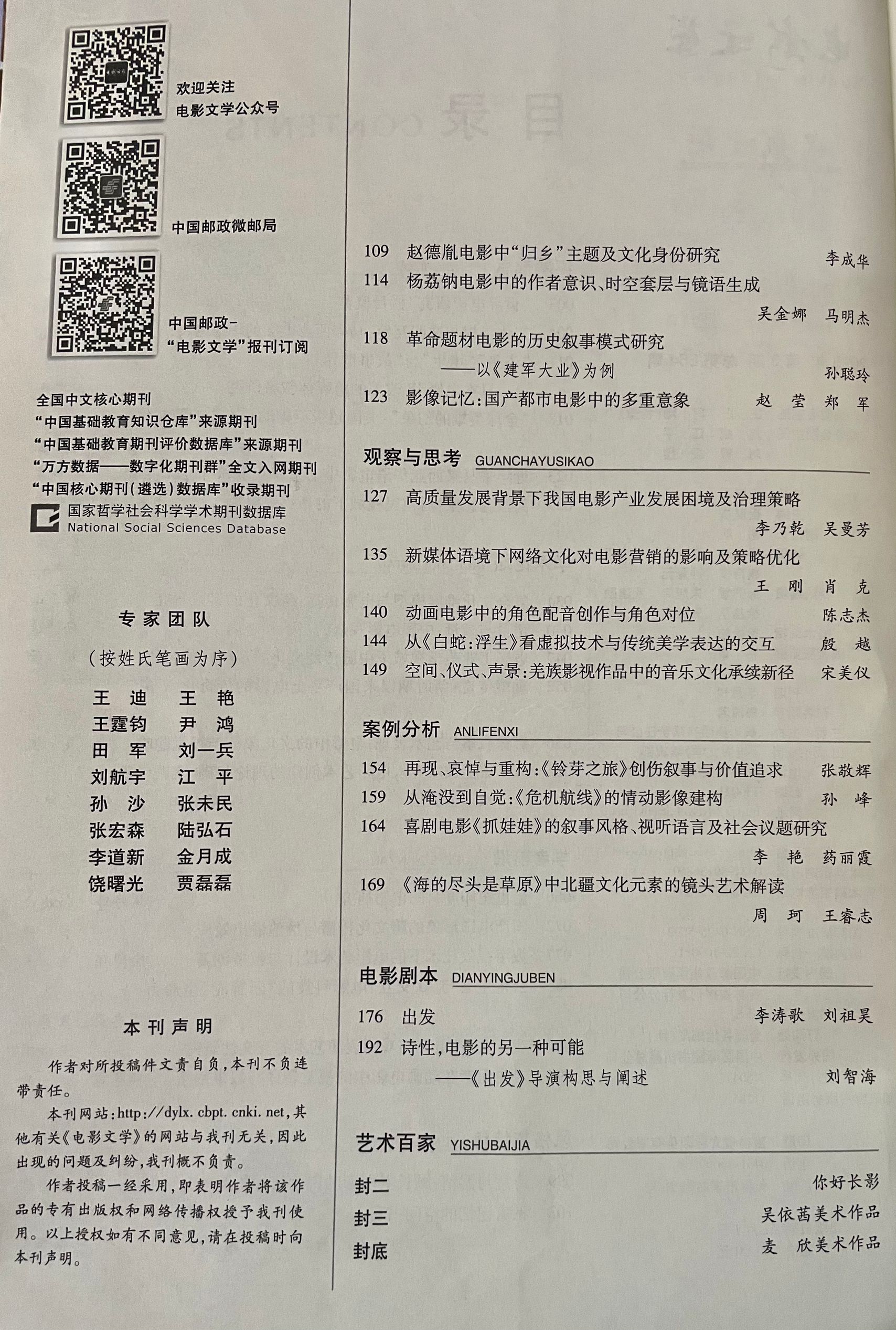 《电影文学》创刊于1958年,其宗旨是立足电影电视的理论研究,关注导演表演的创作思潮,拓展学术争鸣的文化视野,探究艺术流派的价值取向。其栏目设有:学术论坛、博士论坛、新锐视点、导演评述、动漫研究、高校方桌、热片劲评、风格与特色、作品透视、环球纵横、文本研究、影视传播、艺术学苑、影视翻译、影视教育、新电影史料、电影剧本等栏目。
