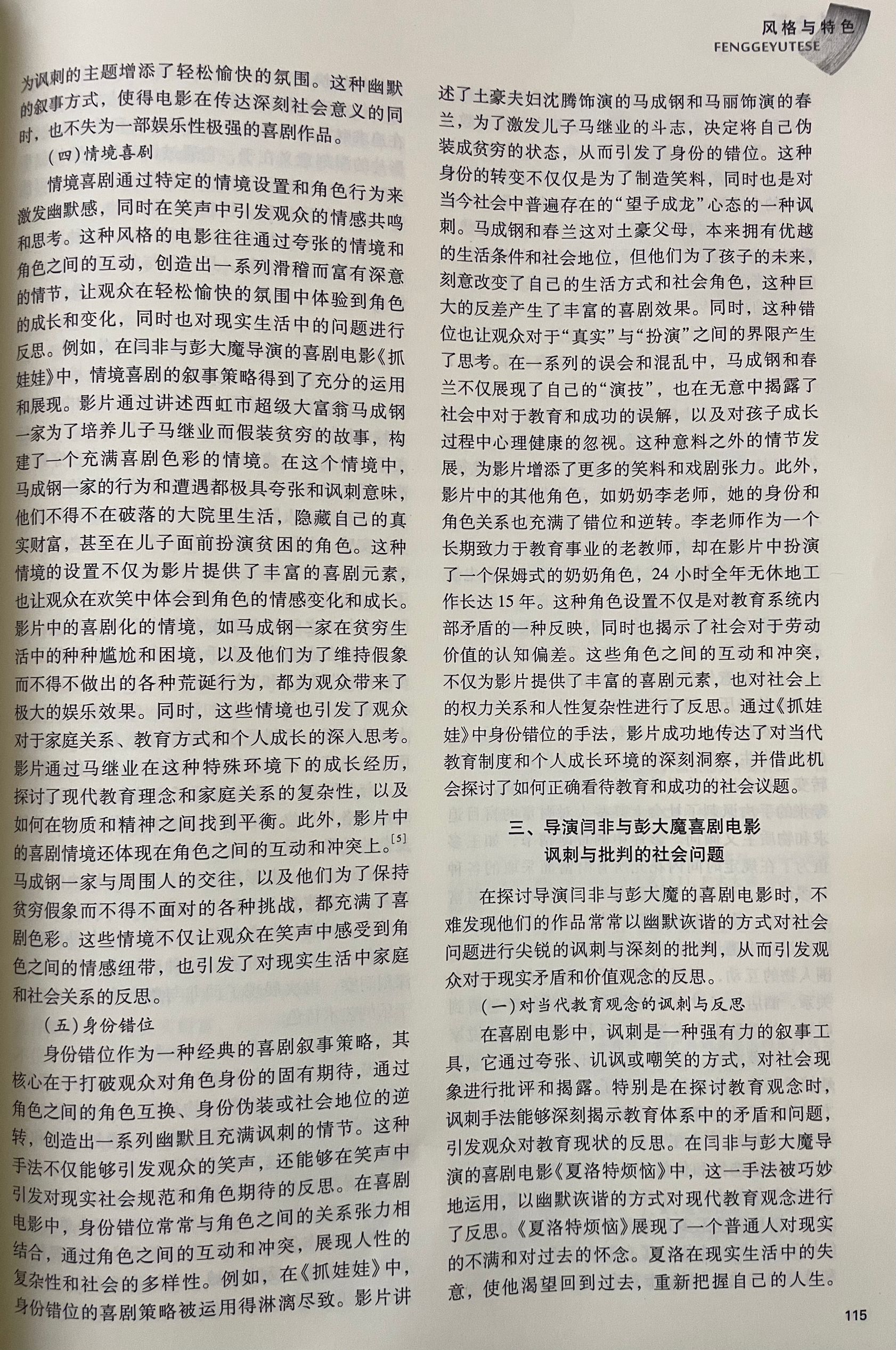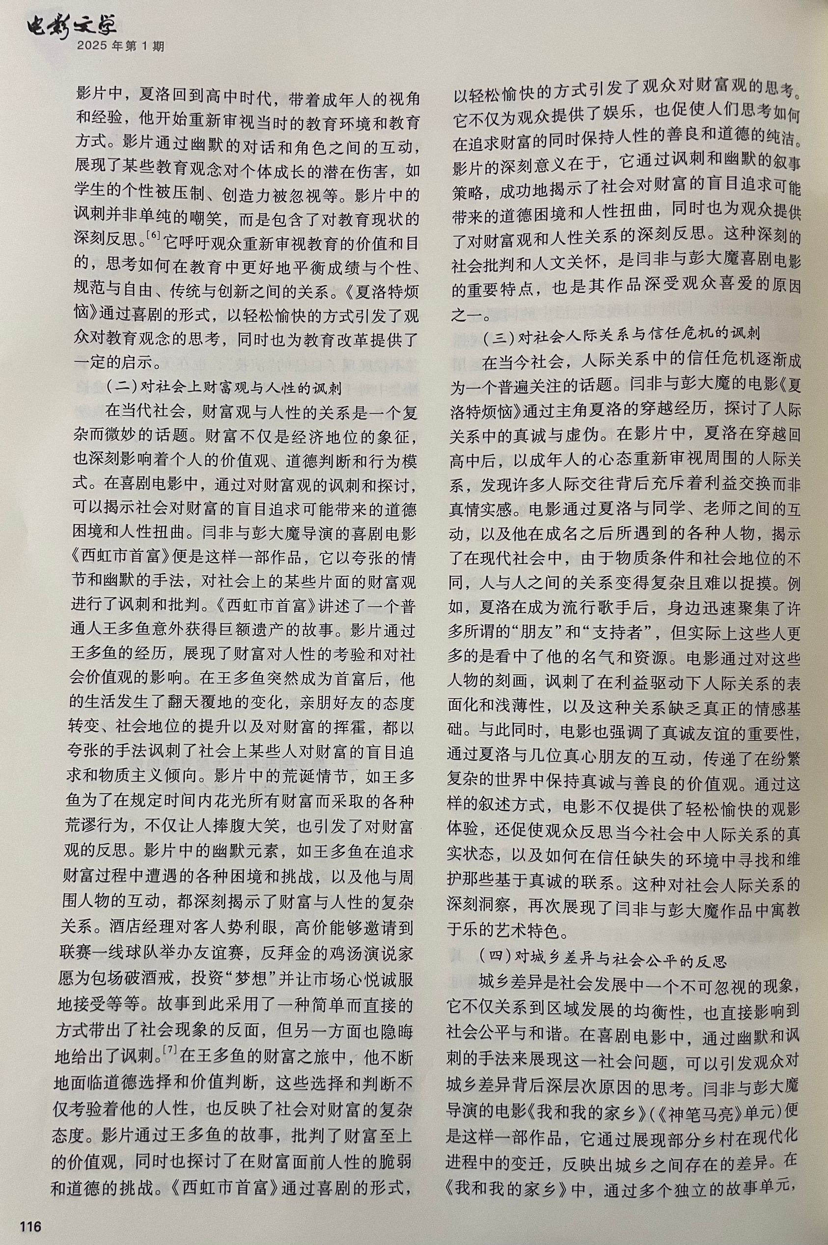 该文提出:导演闫非与彭大魔的喜剧电影作品通过独特的幽默风格和深刻的讽刺意味,在中国电影市场中占据了重要地位。他们的作品不仅娱乐性强,还蕴含着对社会现象的敏锐观察与批判。这些电影通过夸张、讽刺、荒诞、身份错位等手法,将社会议题和人物情感融入幽默诙谐的叙事之中,让观众在欢笑的同时也引发大家对财富、教育、家庭关系、社会与个体等方面问题的思考。通过这些叙事策略,电影传达了对社会问题的深刻反思,促进了观众对社会现象的深入理解。