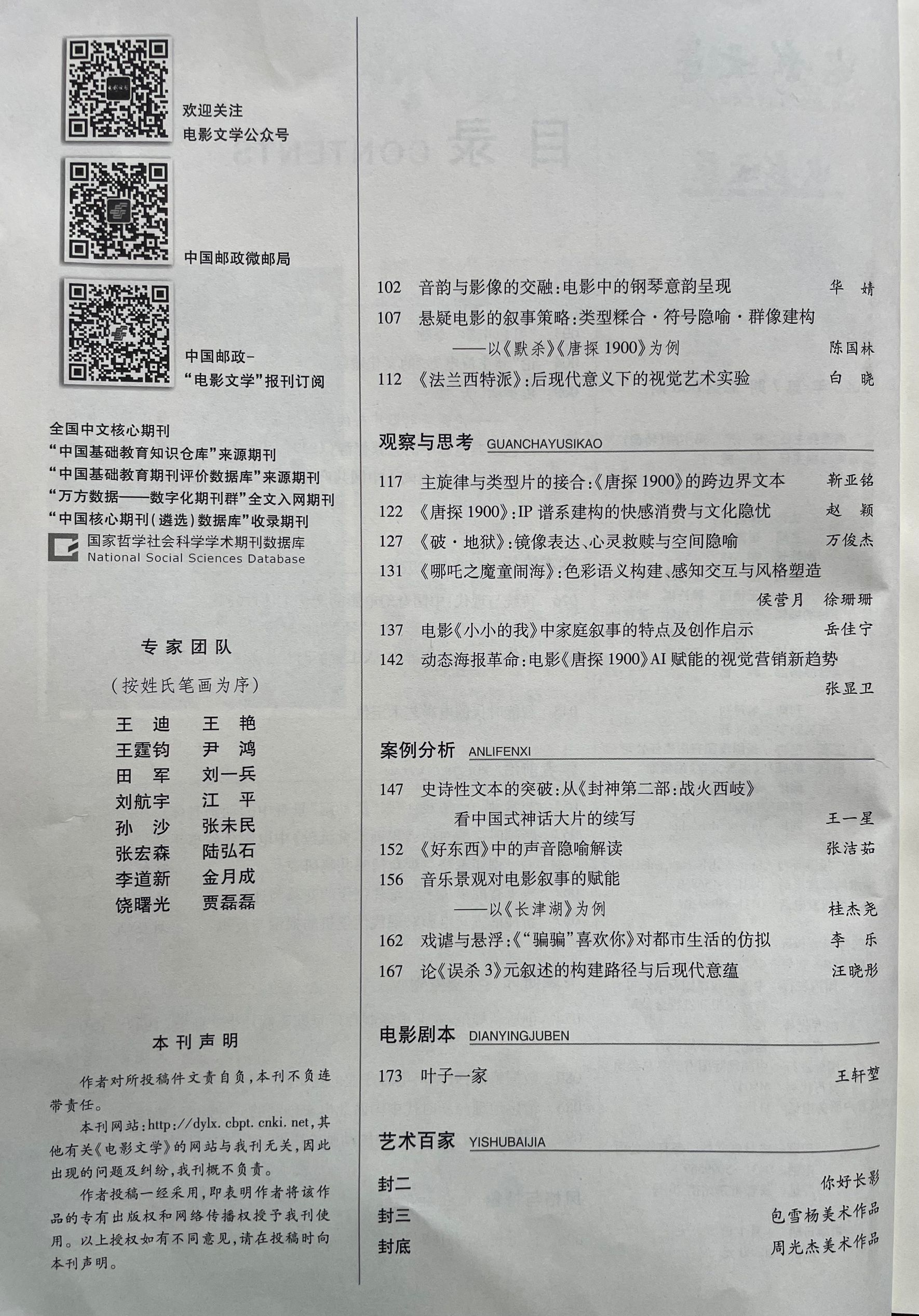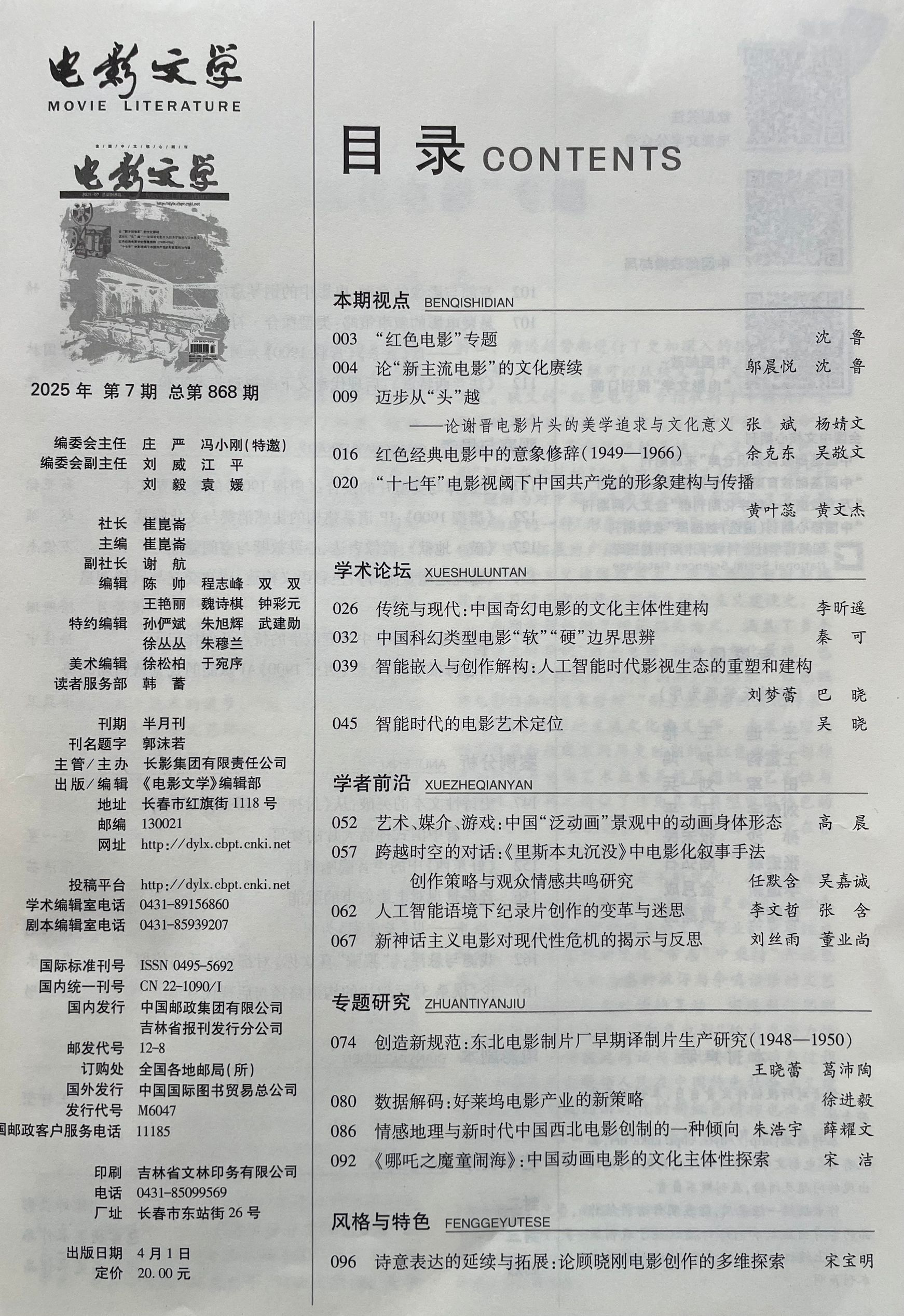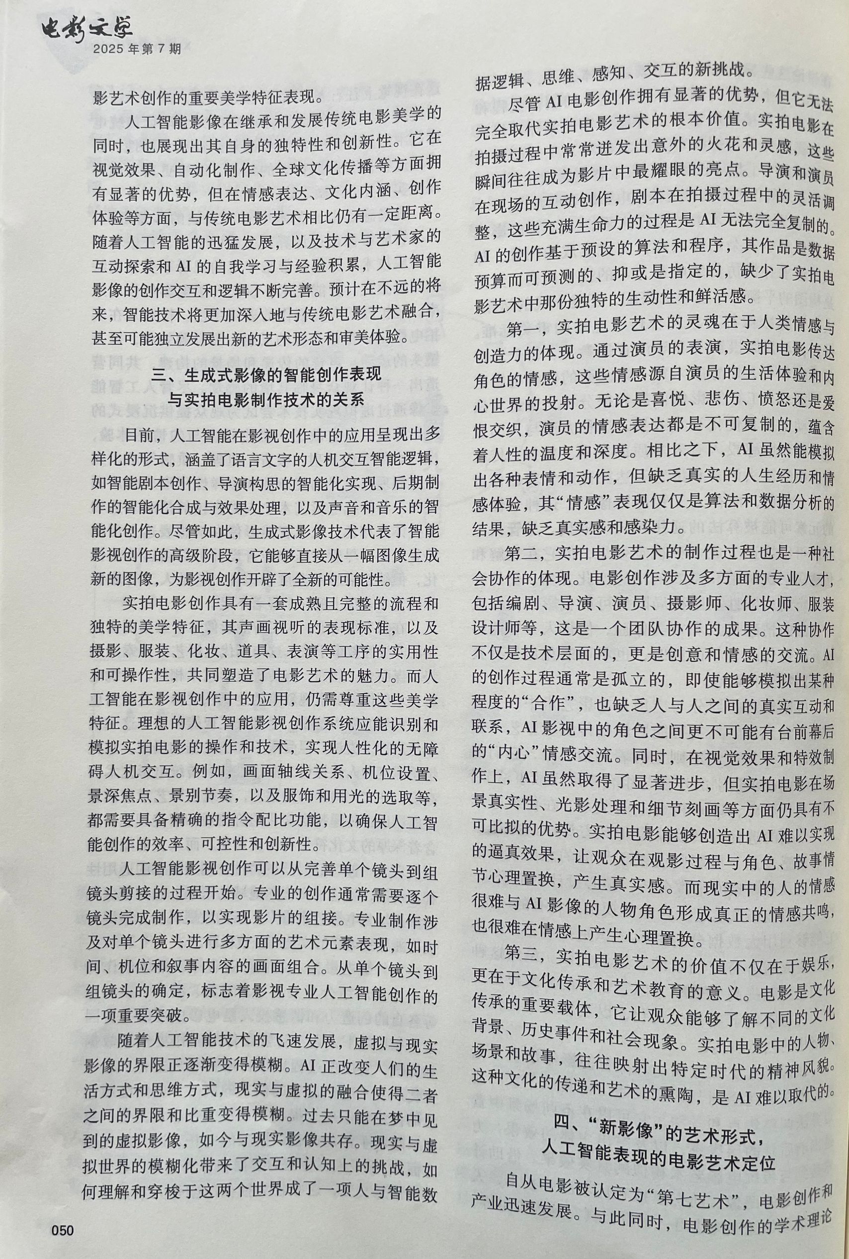近日,我校吴晓老师撰写的论文《智能时代的电影艺术定位》在全国中文核心期刊《电影文学》正式发表。