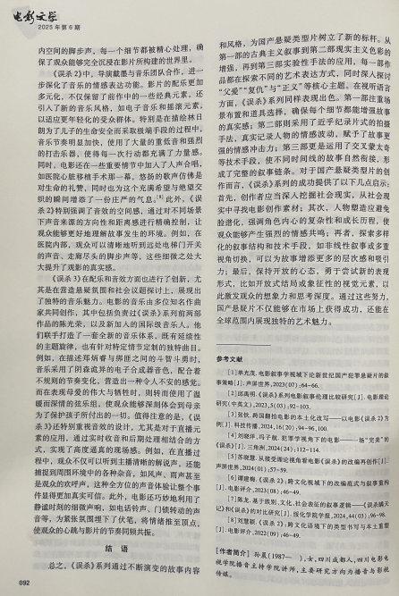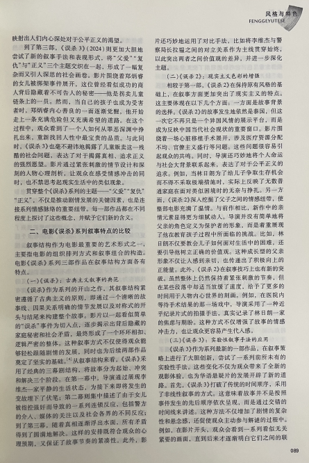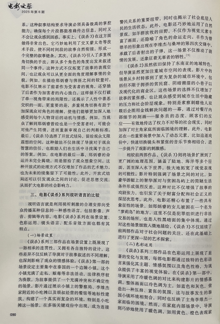 该文提出:《误杀》系列通过本土化改编和创新,成功构建了具有中国特色的悬疑犯罪电影。从第一部的古典主义叙事到第二部现实主义色彩的增强,再到第三部实验性手法的应用,每一部作品都在探索不同的叙事表达方式,探讨“父爱”“复仇”与“正义”等核心主题。在视听语言上,各部作品根据自身特点精心设计场景、音乐、灯光及摄影角度,增强了故事的真实感和情感冲击力。《误杀》系列电影反映了社会现实,触动了观众心灵,展示了国产悬疑类型片在艺术表达和社会价值上的双重突破。