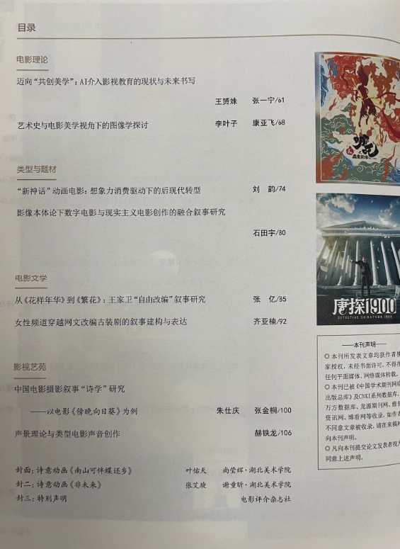 近日,我校齐亚楠老师撰写的论文《女性频道穿越网文改编古装剧的叙事建构与表达》在全国中文核心期刊《电影评介》正式发表。该论文系四川省哲学社会科学重点研究基地四川网络文学发展研究中心资助项目《穿越题材网络文学改编影视剧的叙事研究》(项目编号:WLWX-2022014)阶段性成果。