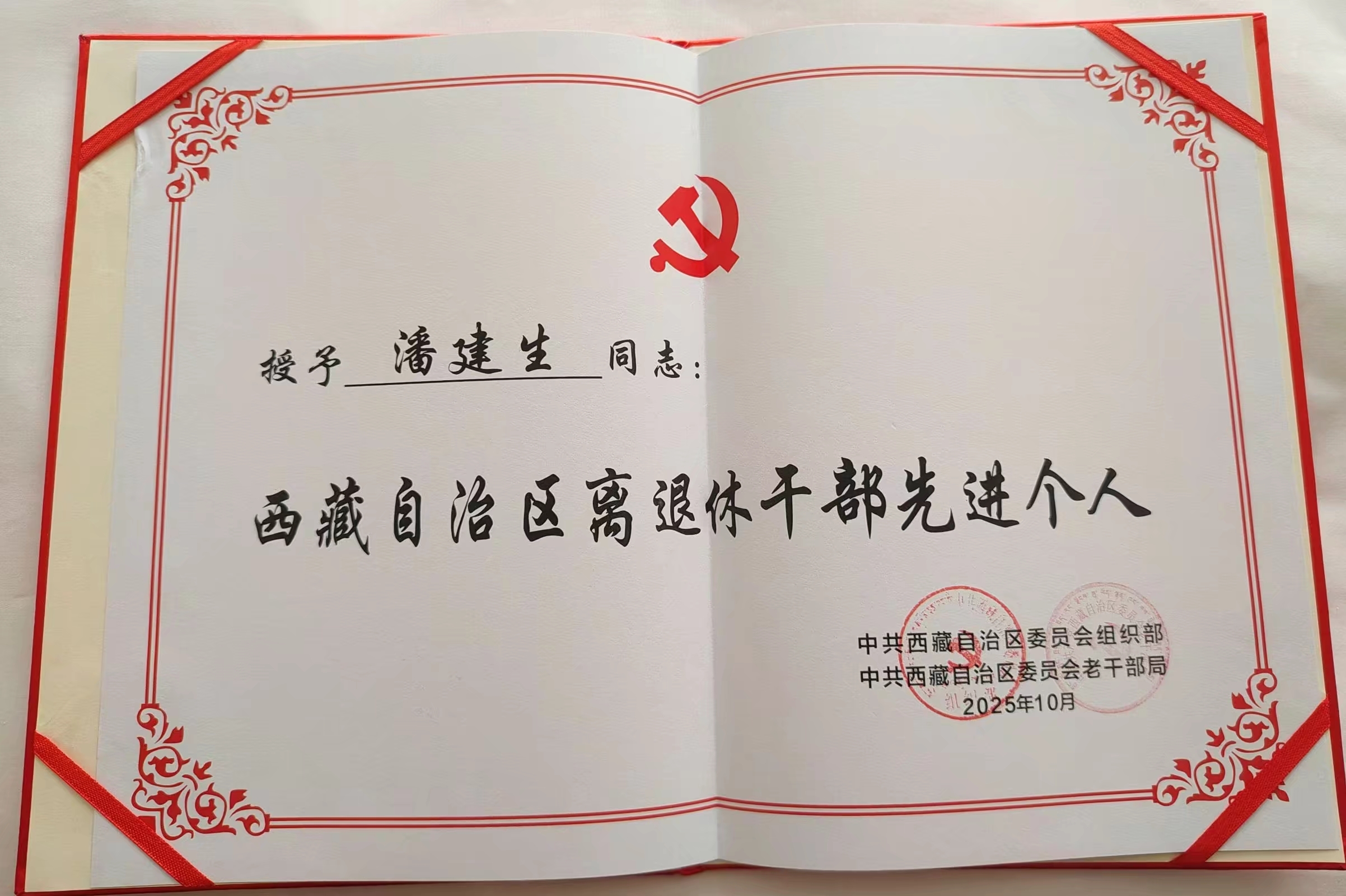 值此西藏自治区成立60周年之际,近日,西藏自治区离退休干部先进集体和先进个人表彰大会在拉萨隆重召开。西藏自治区党委书记王君正会见全区离退休干部先进集体和先进个人代表。beat365平台官方网站学术带头人潘建生教授凭借在学术研究、思政教育、社会服务等领域的突出成就,荣获西藏自治区离退休干部先进个人称号,并在表彰大会上受到表彰。