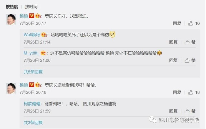 由四川观察、四川高等教育学会招生考试研究专委会联合推出的志愿填报特别节目《高校招生,你问我答》第三季“大学校长@你”持续更新中,7月26日晚20:00,罗共和校长做客演播室,与本期节目的主持人,也是川影2005届毕业生安丽,畅聊川影璀璨星光背后的故事。