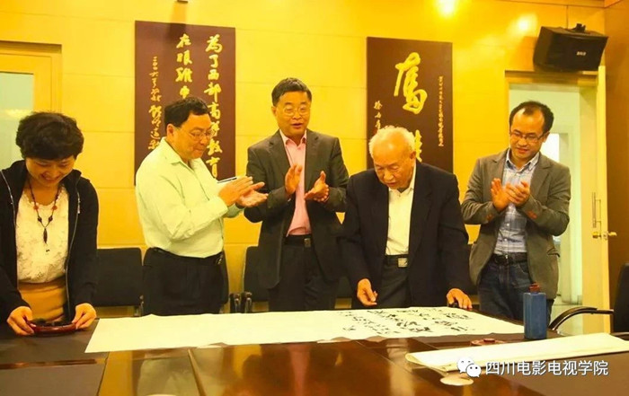 在此次考察中,潘先生更盛赞川影是“最具魅力的学校”,并挥毫题词“敢为天下先”,充分肯定川影在应用型艺术人才培养与新型学科建设方面的创新与探索。