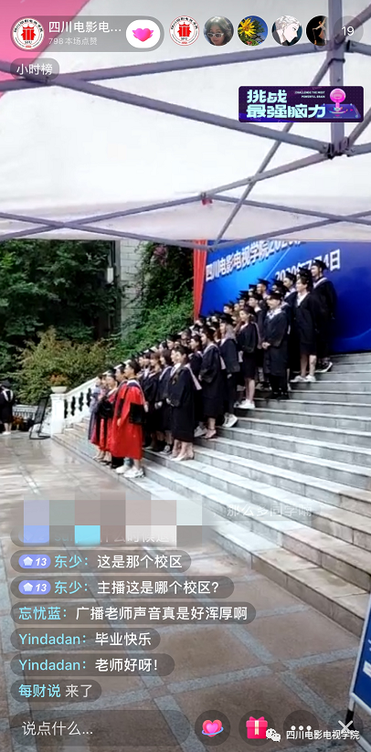 直播过程中,由川影师生组成的主播上线,带大家漫步校园、讲述校史、暖心互动,一起回顾校园时光,感慨相聚与别离。
