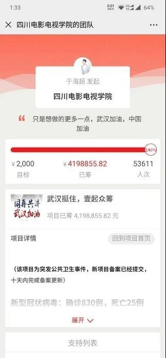 他谈到:"我们的团队26天募集到资金10w+,为湖北省6家医院(石牌岭方舱医院和武昌方舱、浠水县中医院、黄梅县人民医院、利川市人民医院、十的堰市郧阳区人民医院)和河南省目前感染人数最多的信阳市的信阳市第五人民医院和信阳疾控以及武汉市青鱼嘴、取水楼、东湖路三家社区(捐赠大米近1.5吨)输送了8批物资,与其他组织与医院对接协调了4批资源。同时以个人名义在壹基金平台发起众筹,累计筹款达到4289.17元,所筹款项均用于对湖北疫情的医疗物资支援,以及对周边地区的支援。