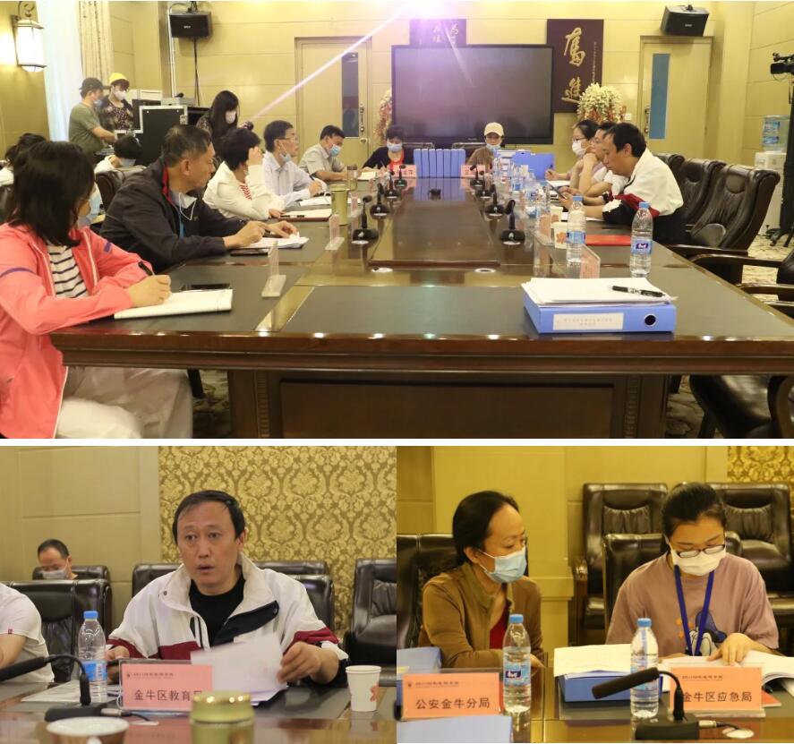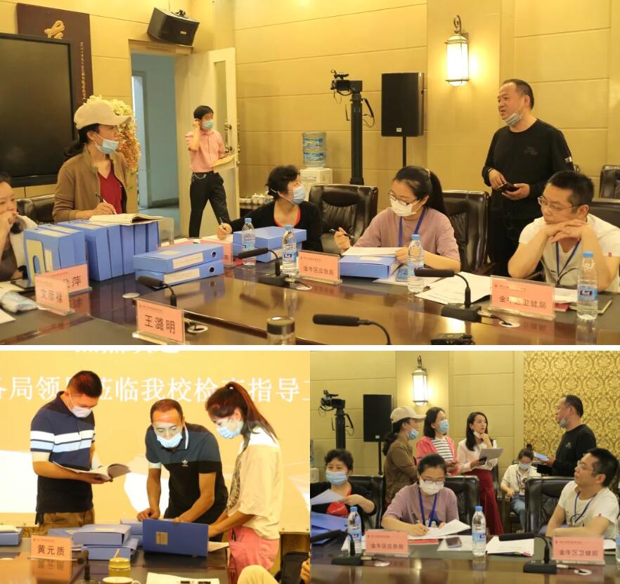 5月26日上午,由金牛区教育局、卫健局、市场监管局、综合执法局、金牛公安分局、应急管理局组成的联合检查组一行来到我校金牛校区,检查指导学校返校复课防疫准备工作。