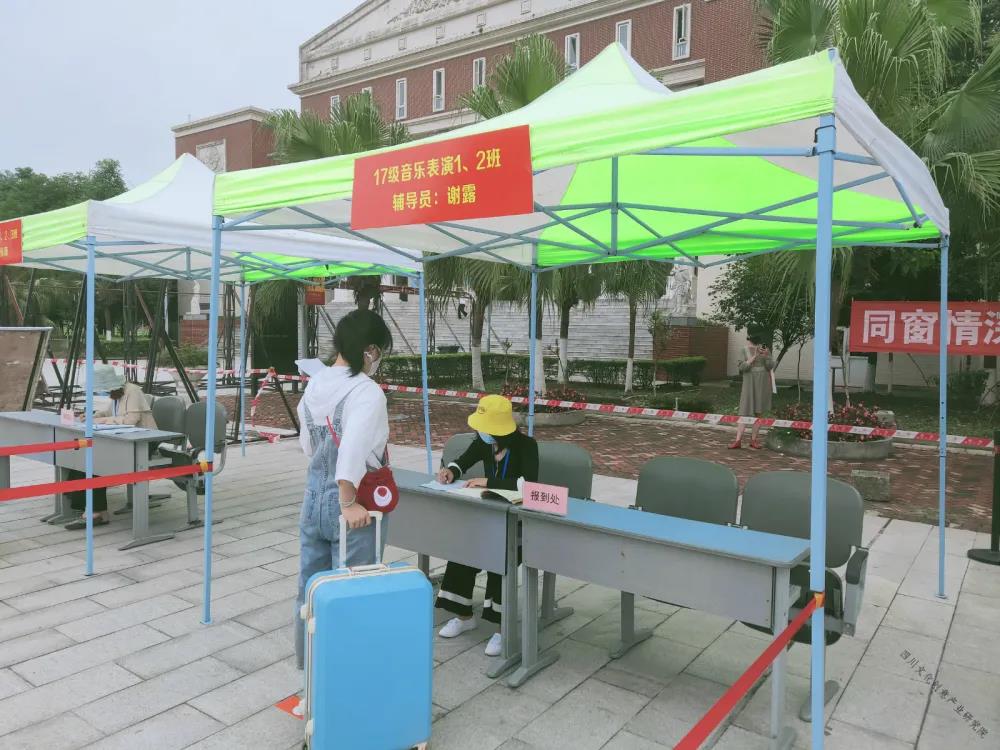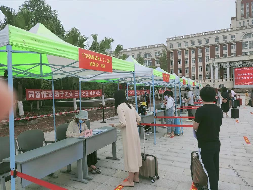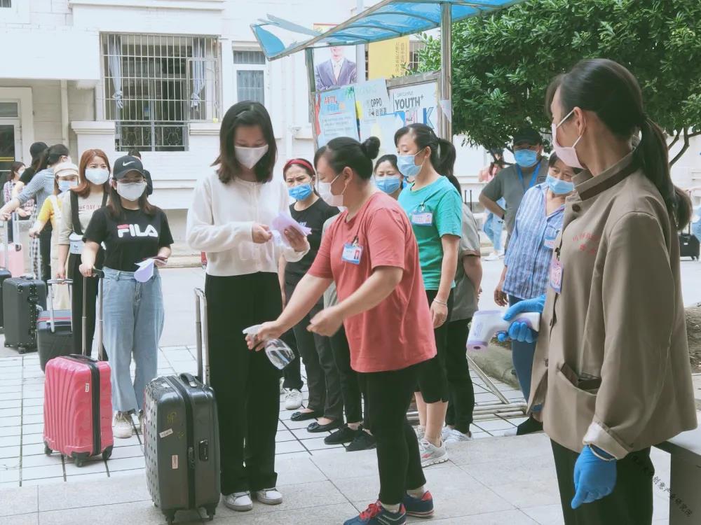 学生入校后由辅导员指挥学生到指定班级报到,要求学生间隔一米排队,按照要求出示证件进行登记,登记完后保持距离自行前往所在宿舍办理入住手续。