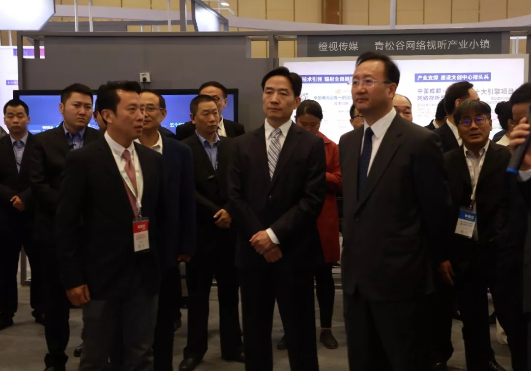 国家广电总局、国家广播电视总台及四川省领导一行步入川影展区驻足