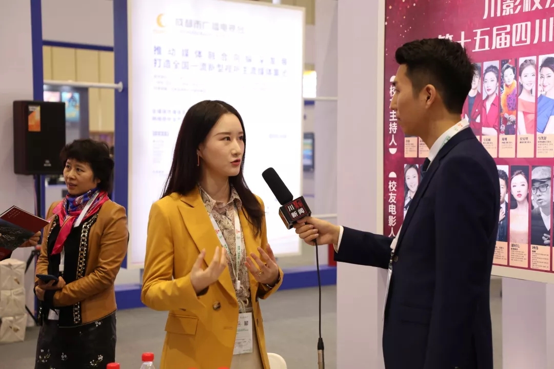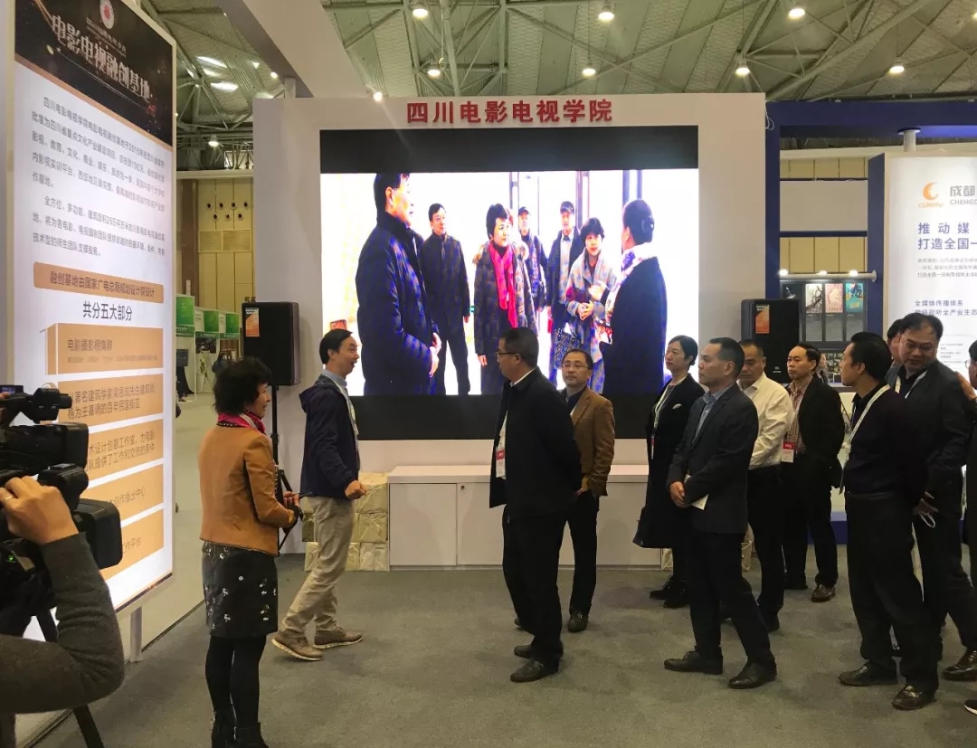 学校金牛校区校办主任孙龙萍等相继在展位上为观展人作了介绍。同时,孙主任指出,此次电视节展区更多是作为节目交易的平台以及展示推广5G应用,川影期待“电影电视融创基地”能够发挥效能,与各大影视机构达成合作。