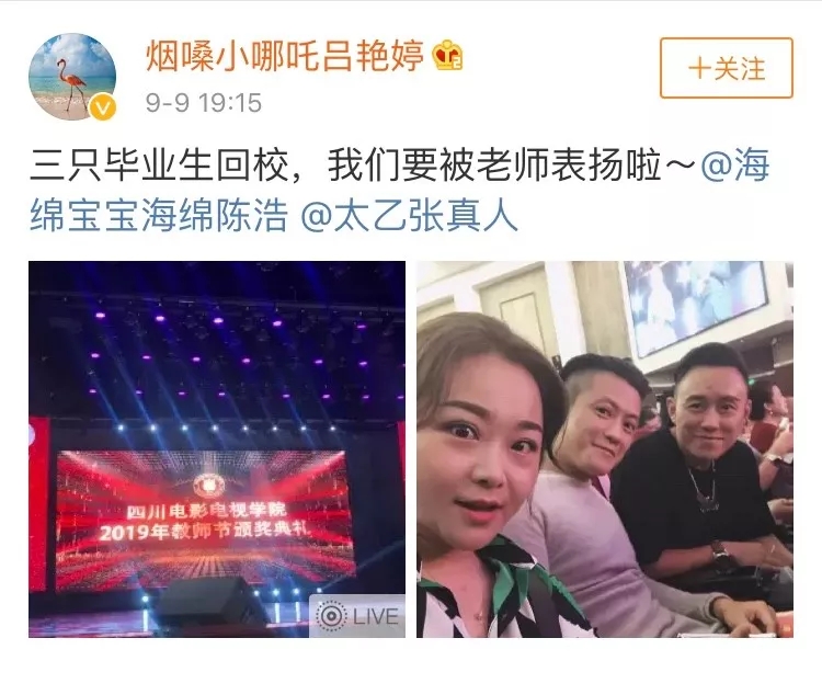 陈浩、吕艳婷、张珈铭回母校川影领奖时同台
