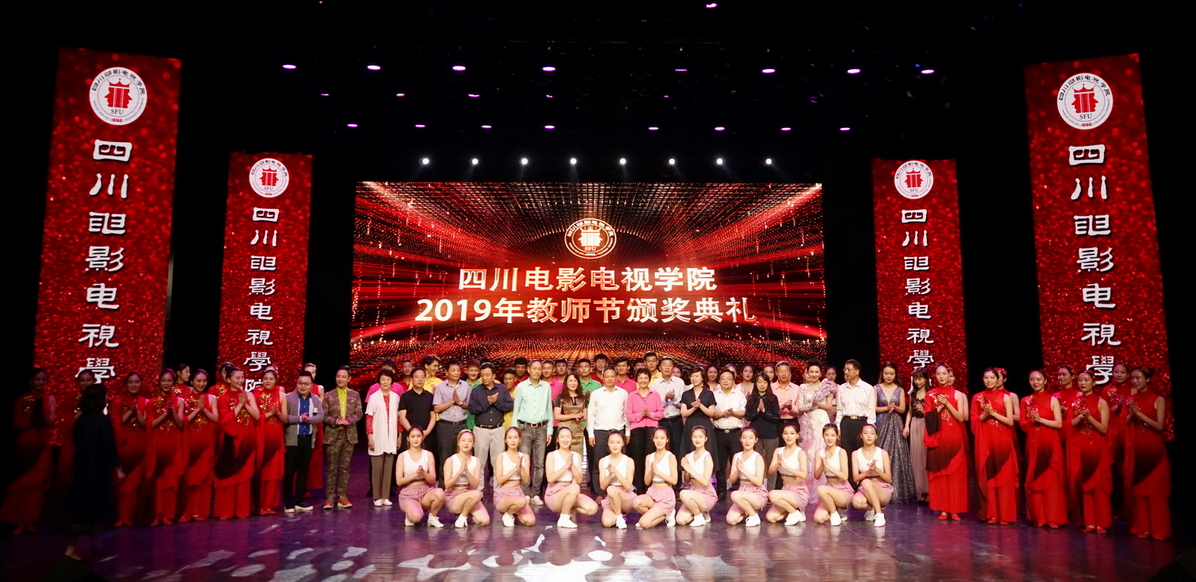 当晚,川影“2019年教师节颁奖典礼”在安仁校区贡院大剧院盛大举行。学校特邀四川省教育厅民办教育处处长贾贵洲、省教育厅宣传统战处副处长罗杉杉、中共大邑县委副书记王琰、大邑县教育局局长杨文学、大邑县文体广新局局长周琴、中共大邑县安仁镇党委书记陈建刚等领导莅临,川影董事长黄元文、校长罗共和、党委书记罗映光、常务副校长李健、副校长王潞明、副校长叶文林、党委副书记韩卡兰、工会副主席刘国富等校领导及各院系部处负责人出席。大会由学校播音主持学院大型活动部、高摄传媒转播中心面向全国现场直播。