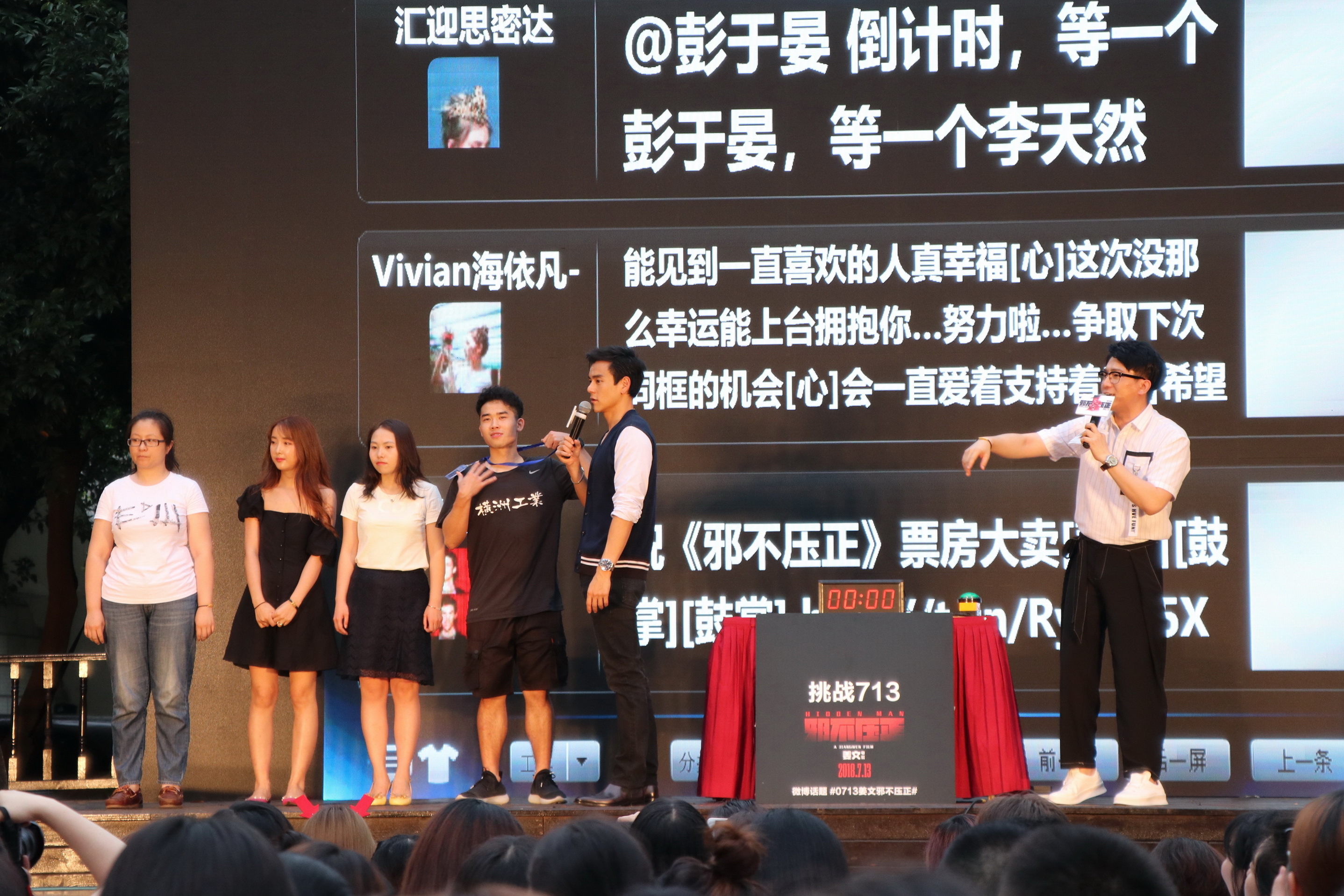 上台互动的幸运同学们与彭于晏合影啦~