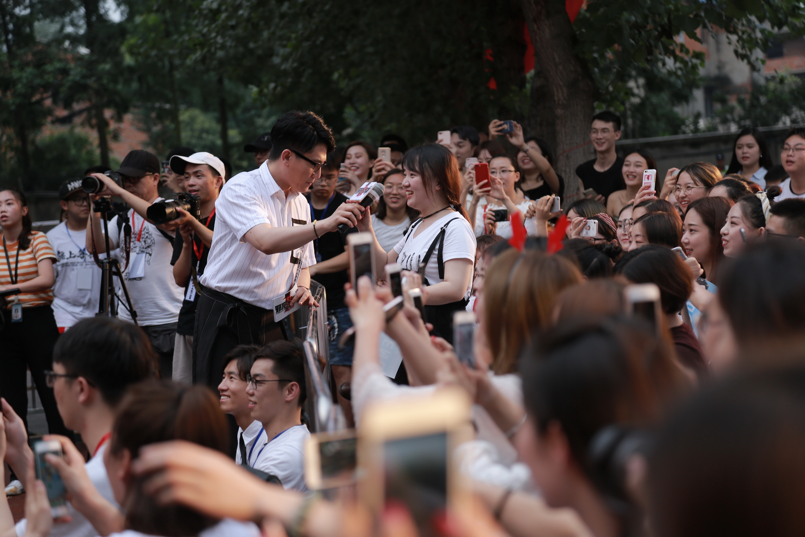 ❒《邪不压正》川影分享会现场晚上7点,现场人山人海,气氛爆棚,尖叫声此起彼伏。早在晚6时,金牛校区运动场前就已大排长龙、水泄不通,明星奇袭可谓有着十足的号召力。川影作为西南地区明星最爱的高校分享会场地,更是吸引数十家媒体争相报道此次盛况。分享会由此如火如荼地开展起来啦~