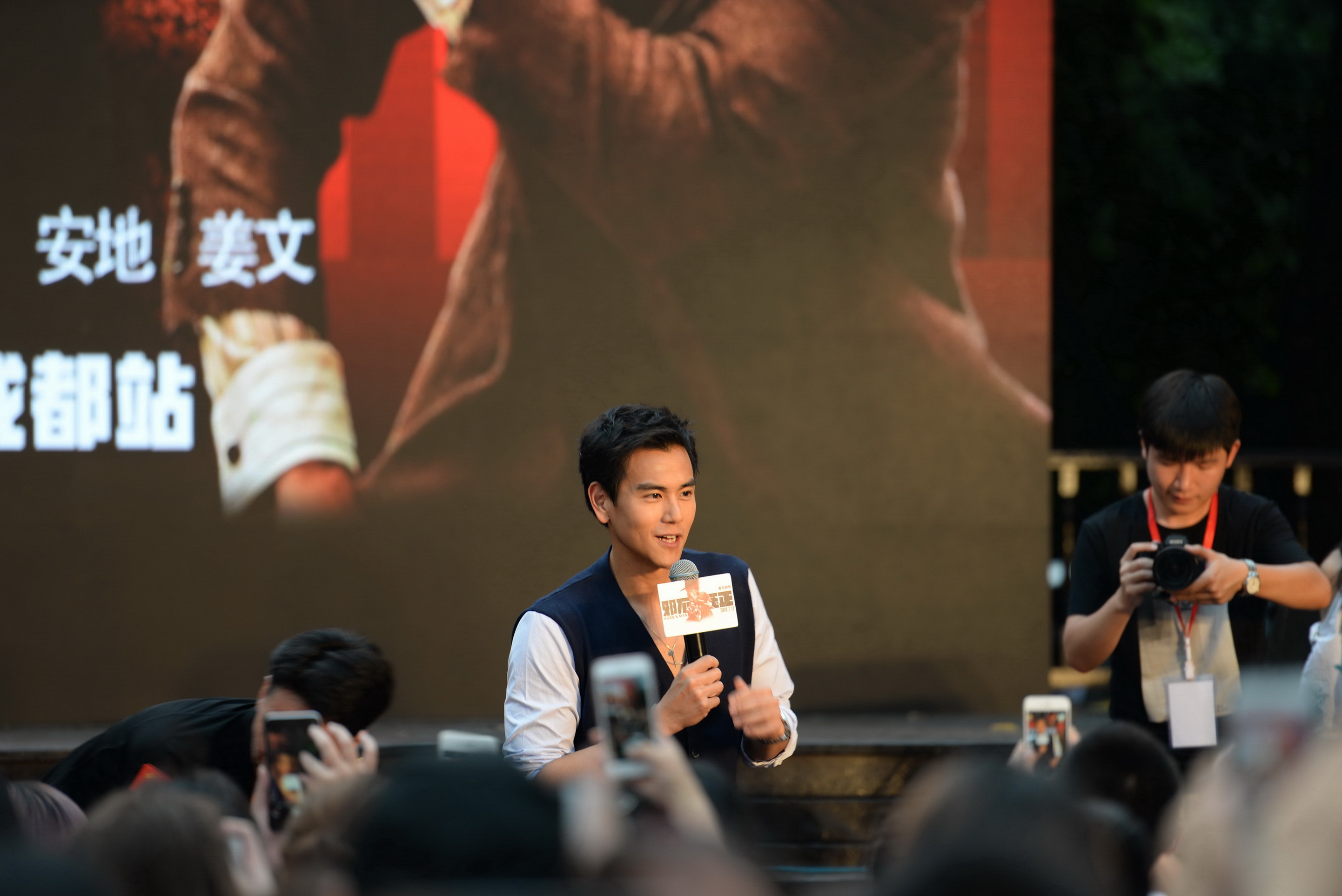 一身白衬衣黑色夹克帅气十足的彭于晏刚一登场,便引发现场气氛持续升温,迷弟迷妹们的情绪引燃到最高点!幽默亲和的彭于晏轻松地和川影同学们打着招呼,并介绍了《邪不压正》这部影片的特色。彭于晏在剧中饰演李天然,他表示,这是第一次与姜文导演合作,《邪不压正》有着复杂的剧情,细腻的思考。彭于晏表示,实在太喜欢姜文导演,与姜导合作十足过瘾。他称赞到,“和姜文导演合作,你才会知道他是多有才,有着对电影的坚持与追求”。