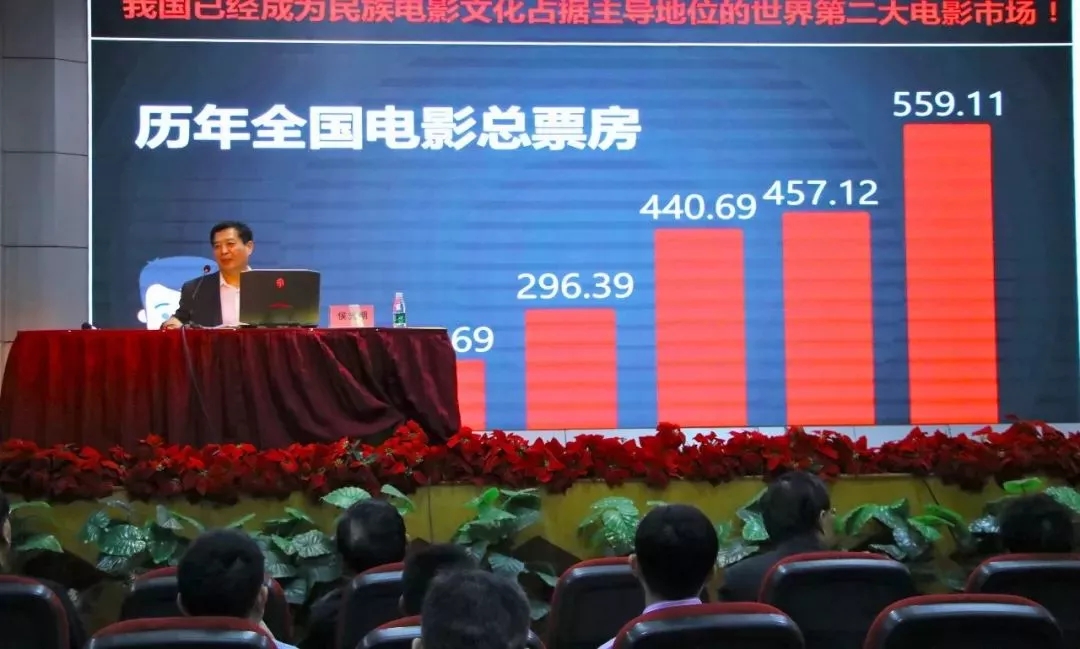 讲座开始,侯光明书记通过对世界局势及中国顶层设计的深度分析,深入浅出地揭示了中国电影所处环境。他指出,中国电影是中国文化强国战略的领军代表,中国电影市场快速崛起,已成为世界电影业发展的瞩目焦点,也将成为世界第一大电影市场。但从建设世界电影强国的目标来审视,我们还需直面三个问题,一是中国电影不仅要做大市场,更要向世界塑造中国形象和价值,让电影成为中国文化的名片。二是在电影创作中,如何将电影思维和电影语言与中国传统文化与艺术经验融汇共聚,形成具有民族风格的代表作品,尚有一定的开拓空间。三是在电影研究方面,要构建中国电影自己的理论话语体系,让电影作品既要融入国际主流趋势,又带有浓郁的中国文化气质。