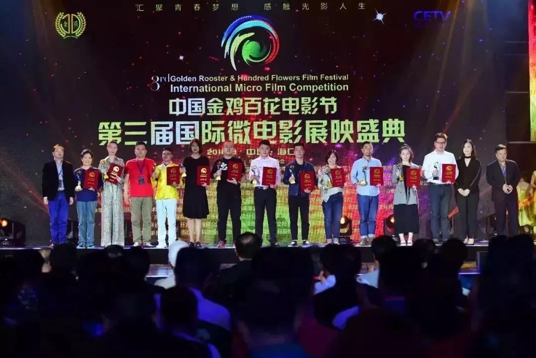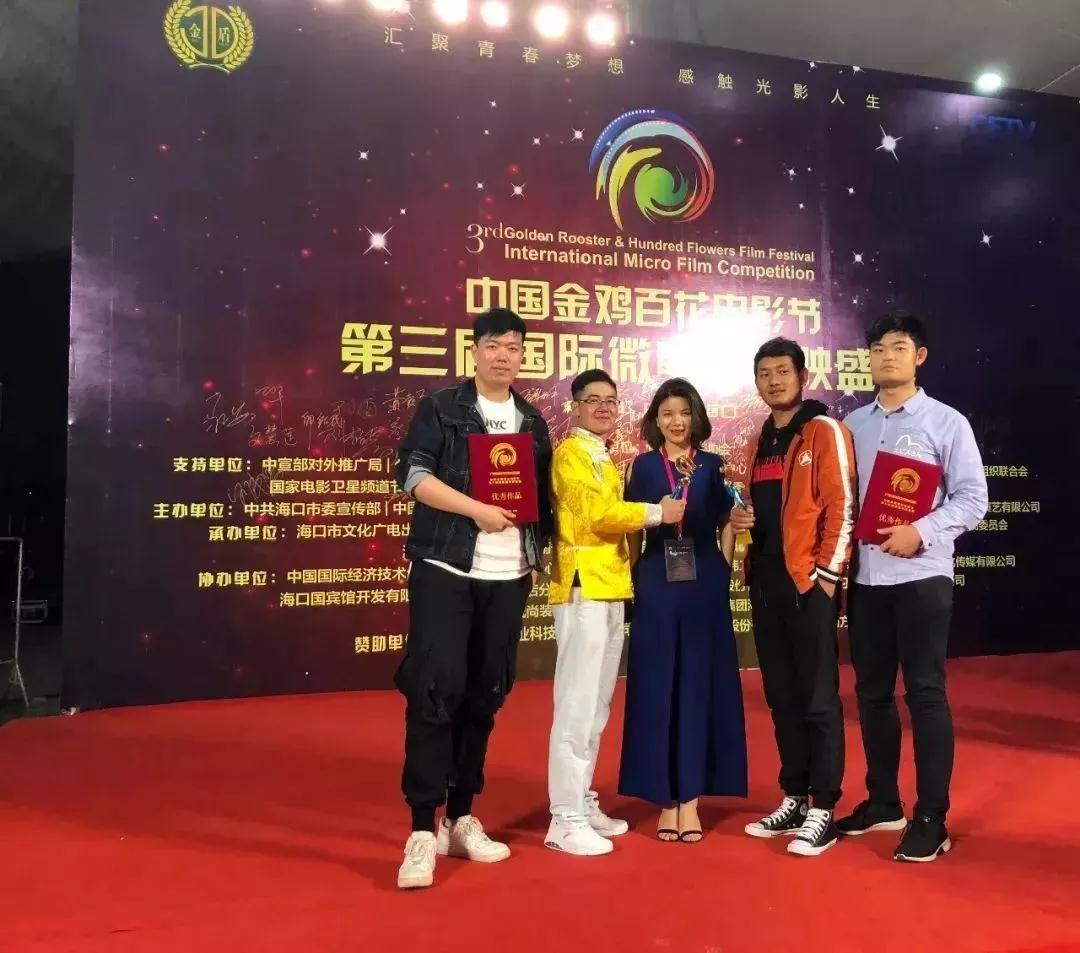 3月28日,中国金鸡百花电影节第三届国际微电影展映盛典在海口隆重举行。各支持单位、主办单位领导、嘉宾,电影界艺术家、明星、知名人士等悉数到场助力。本次展映活动面向全球征稿!竞争无比激烈,共征集微电影作品7300部,有来自中宣部、公安部、国务院国资委、国家税务总局、国家卫计委、中华全国总工会等有关部门推荐的作品,也有来自全国各企事业单位、高校的作品,另外征集国际作品也是本届活动的亮点,来自全球27个国家的200余部国际作品参与。7300部作品共分三轮进行评选,终评于3月13日在中国电影家协会举行,评委来自以上部委的主管领导和金鸡百花奖、华表奖、五个一工程奖的评委,最终评选出优秀作品及优秀组织单位。川影两部学生作品《一张电影票》、《南高原的风》荣获微电影类最高奖项“优秀作品奖”!教师代表代琳琳及创作团队学生代表罗依体、邱子卡、殷圣伦、柴锡友受邀出席。