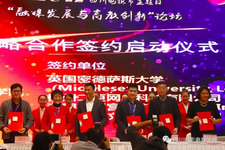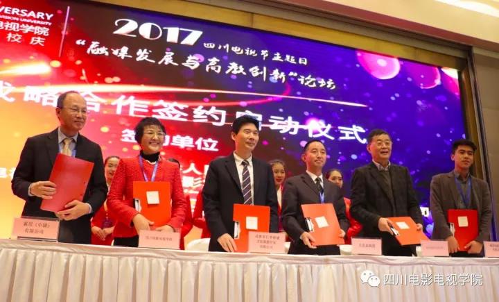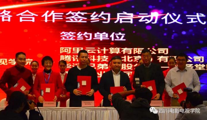 与传媒巨擘战略合作签约仪式:川影与大邑县人民政府、阿里云、腾讯、华谊兄弟、华侨城、二更、索尼、松下等18家政府、业界顶尖企业、高校签约,以实际行动率先践行十九大新教育精神的“产教结合”,全面启动“双创工程”,高层级校企合作为人才培养拓宽大道,发挥川影社会服务功能,助推区域文化、经济发展,创建最具社会价值的艺术院校。