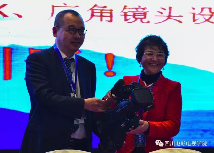 索尼中国专业系统集团中国区营销总监吴永全先生一行将索尼最先进设备赠送给川影,学院黄元文董事长接过设备