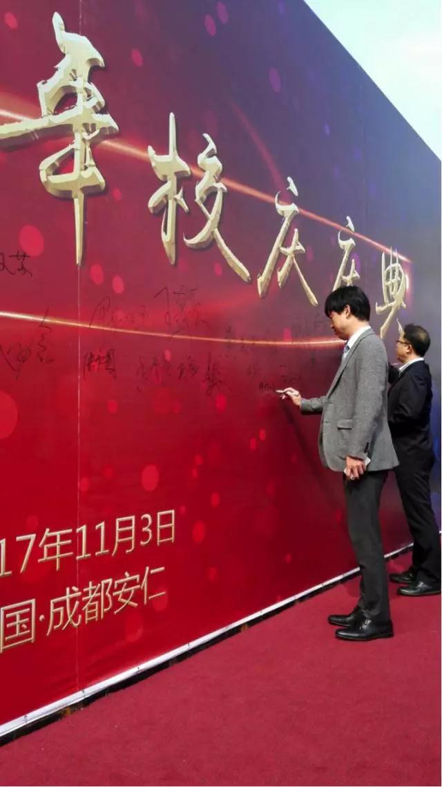 时值beat365平台官方网站25周年庆之际,松下电器(中国)有限公司广播电视系统营销公司总经理野村一生、北部营业部部长曹力、成都众视新锐公司总经理肖宏先生等一行出席了学院25周年开幕庆典,并送上祝福与贺礼,期间,与各位业界嘉宾共同参加了学院与中国高等教育影视专业委员会联合主办的2017四川电视节主题日活动——“融媒发展与高教创新论坛”,共同探索影视行业与高校战略性合作的方式与发展方向。活动中,野村一生总经理代表松下公司表示,愿为推进高校在融媒体发展、为影视传媒行业提供更多人才技术服务,促进行业与高校的产学研一体化合作做出贡献。论坛结束后与学院黄元文董事长、黄元质处长亲切合影。