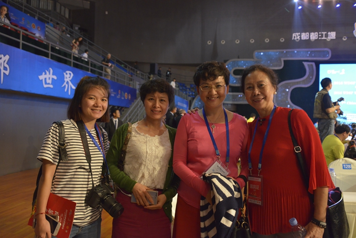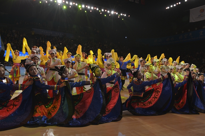 更值得一提的是,如此高规格的世界级比赛现场,有太多川影学子的身影。川影舞蹈系学生在本届赛事下设的“世界体育舞蹈大赛形象大使选拔”中以绝对优势包揽了冠亚季军。9月23日晚,参加本届大赛的全世界200多名世界顶尖选手在都江堰南桥广场举行的赛前欢迎会——“都江堰之夜”活动中亮相,华丽的红毯秀与精彩的晚会吸引了上万市民观看,呈现万人空巷的盛况。其中,晚会全部的5个舞蹈节目均由川影舞蹈系学子表演,舞蹈《李冰父子情》是舞蹈系为晚会专门创作编排的,受到了都江堰市长的高度评价,希望将其作为保留节目在今后都江堰的重大活动上演出。同时,欢迎会的双语主持也来自川影播主系双语班。而在9月24日举行的开幕式的重头戏——开场舞上,我院舞蹈系学生更是上演了一出大型“羌彝藏”舞蹈《岷江风情》,受到了专业人士极高的好评。同学们在舞蹈系主任陈志惠老师的带领下,向世界观众展示了高品质的舞蹈。此外,50名川影同学承担起大赛的礼仪工作。学院播主系双语班更是派出45名志愿者在现场向来自世界各地的外宾做一对一翻译等服务!