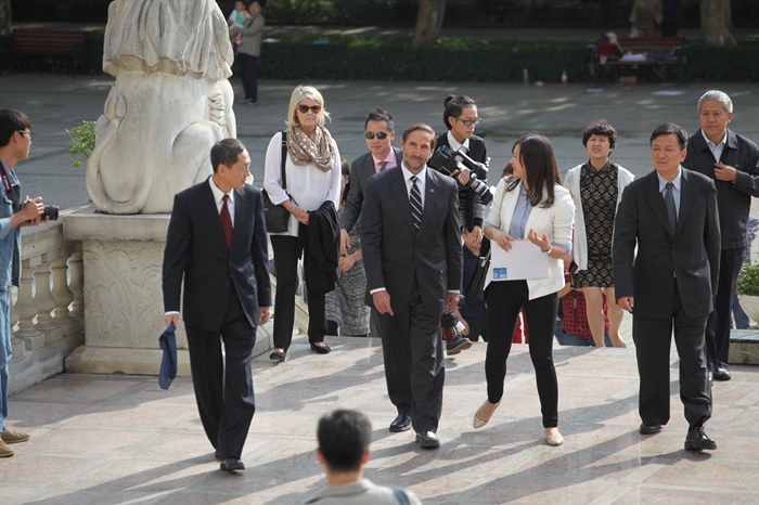 (Don Betz博士一行在院长罗共和等领导陪同下参观安仁校区)
