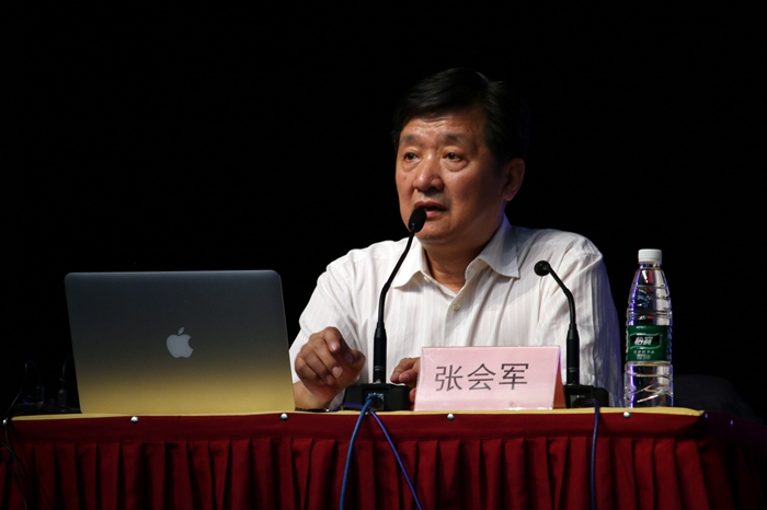 讲座开始,张会军院长从摄像和电影两大板块为学生进行讲解。张院长说,电影故事是可以用一句话说清楚的,也可以是一万句话都说不清楚的。选角儿很重要,剧作中需要有贫与富、生与死、权与欲等加入来打破平衡,可以是情理之中意料之中,也可以是情理之外意料之外。看完原小说再来看片子,研究其中的门道才能迅速学到东西。