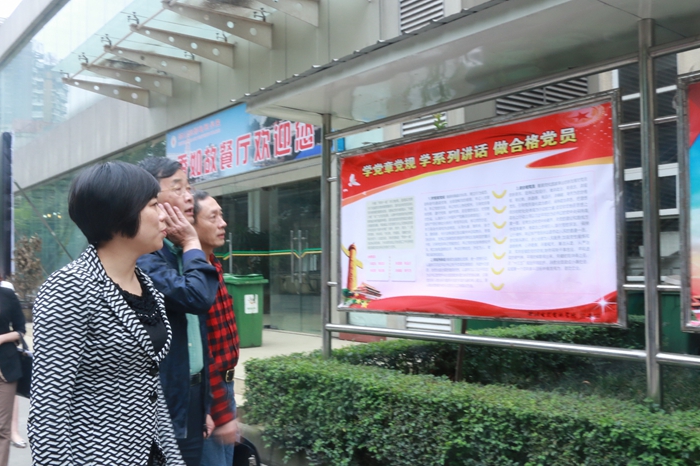 (刘晓晨副书记一行在院领导陪同下浏览宣传栏)