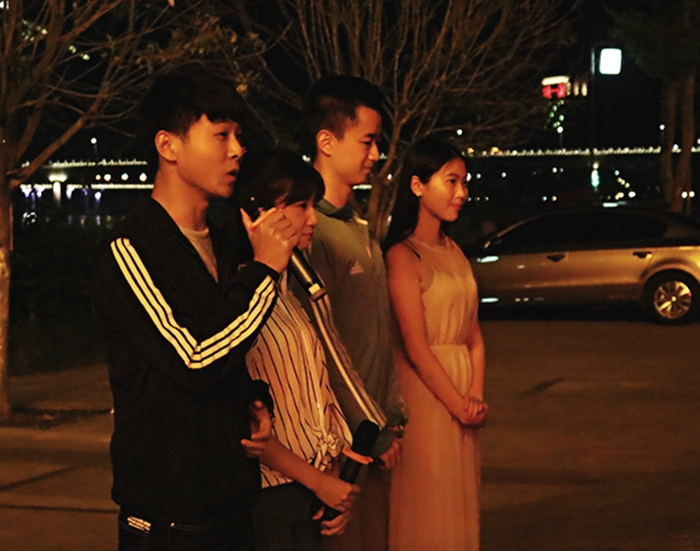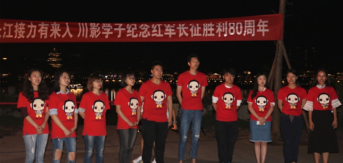 当日晚,师生们在阆中嘉陵江边举行了“长征接力有来人,川影学子纪念红军长征胜利80周年”晚会,在一首铿锵有力的《长征》朗诵中晚会开始,随后罗映光书记为大家讲述了在阆中长征中的故事,以及此行来到阆中的重要意义。在晚会中,播音系党支部成员特别根据主题进行了即兴思维表演,根据阆中历史文化中特有的“醋”、“张飞牛肉”和“贡院”与长征结合,讲出了红军不怕远征难的精神。