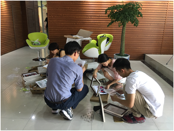 6月5日当天成都的室外温度高达38°,筹备组的志愿者们依旧按时到位,从早上10点就在评片会地点——成都新格林精品堂艺术学校,开始忙碌了。
