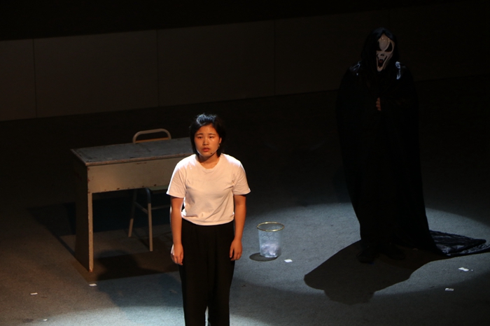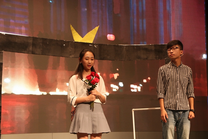 接着,戏文系的同学们开始了他们的专业汇报,六个原创小品的精彩展示。《交易》《白昼的镜子》《模特》《恶魔的交易》《毕业监狱》《卖花的小姑娘》,这六部小品故事都是由戏文系同学们自编自导自演的,戏剧性的情节和鲜活的人物形象赢得观众们掌声不断。