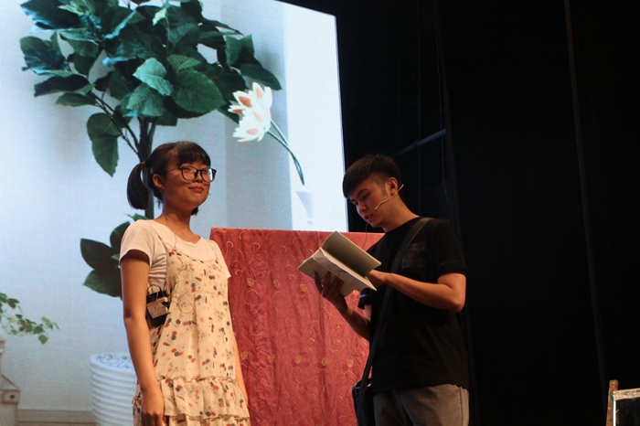 首先,梁沪生老师致辞表示,戏剧教育应该根植在每个人心中。戏剧是一种舞台表演艺术,而小品是戏剧人用心编织的梦。我们沉醉在这样的梦幻殿堂里,戏文系的同学一直努力地学习知识,汲取营养,一次一次地编织着一个又一个美丽的故事,戏剧梦想永远都不能忘记!