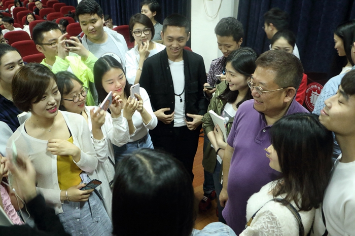 到场的观众都沉浸在李立宏老师声音和表达的无限魅力之中,现场反响积极热烈,至此中国传媒大学戏剧影视学院表演教研室主任李立宏老师莅临川影指导落下了帷幕。同学们将李老师围着,继续向他请教问题并合影留念,更多交流与合作还会持续。