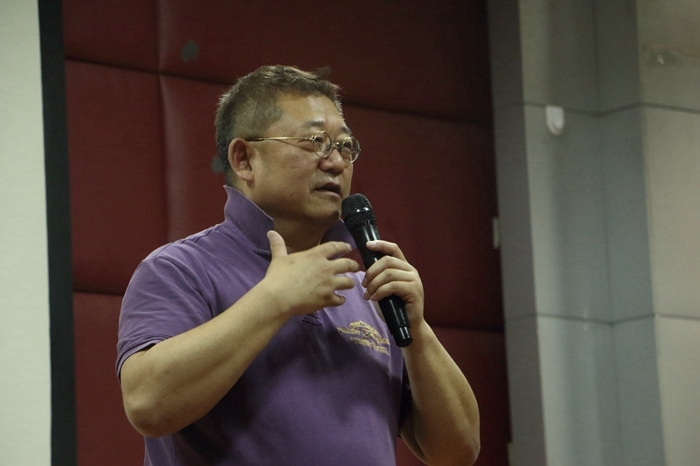 活动接近尾声时,现场播放了几段来自川影播音与主持艺术系13级高配班的作业,包括《话说长江》《女医明妃传》《无心法师》等专题片和影视剧,李老师在现场亲自给予了中肯、有针对性的指导。他一方面肯定了同学们在发声时,实多虚少的好习惯,一方面也说到在影视配音中,要注意加强声音外形的塑造,而不仅仅是状态的变化。在这个过程中,应体会人物心理、行为、语言的不同,把自身揉进角色,达到人物情绪自然的流露。他还指出,要做到“不露声色”,又有内涵的传递,这需要学生们长期的积累和领悟,厚积薄发,来感受编剧的用意。