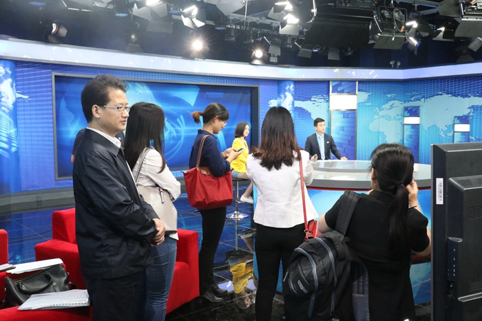 丁副研究员一行首先观看了学院宣传短片,并参观一体化演播室、校园电视台等教学实训场地。他们认为,学院“双师型”师资的强大,培养出谢娜、李易峰、张鹏程等全国知名的主持人、演员、制片人等,结合严格的管理制度,学院的人才培养已进入良性循环的模式。