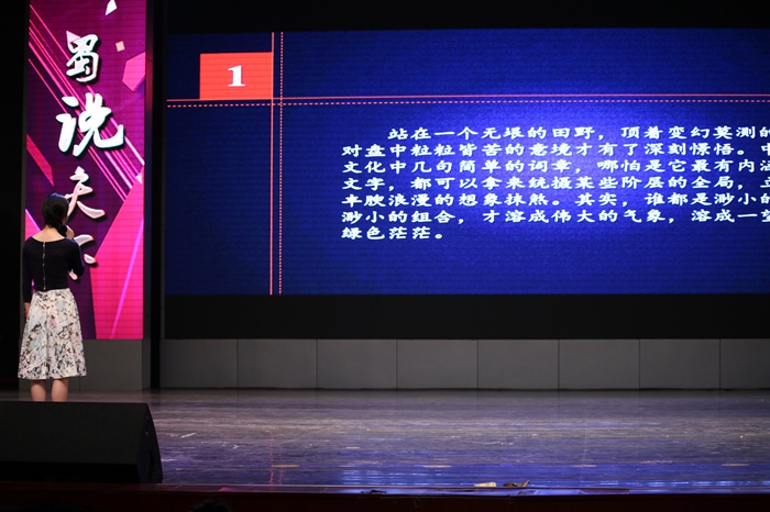 第三环节《蜀说天下》中,参赛选手现场抽题,看图即兴说话。