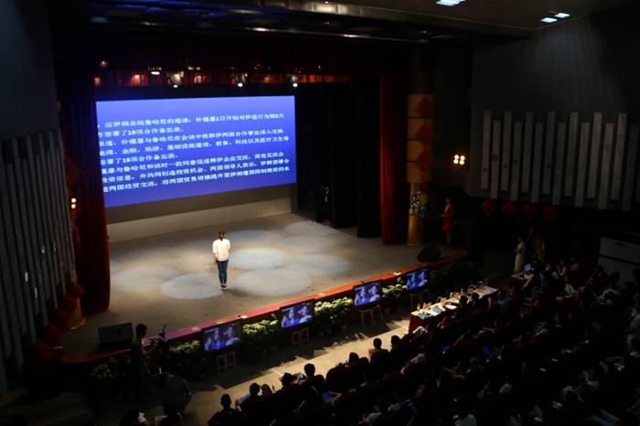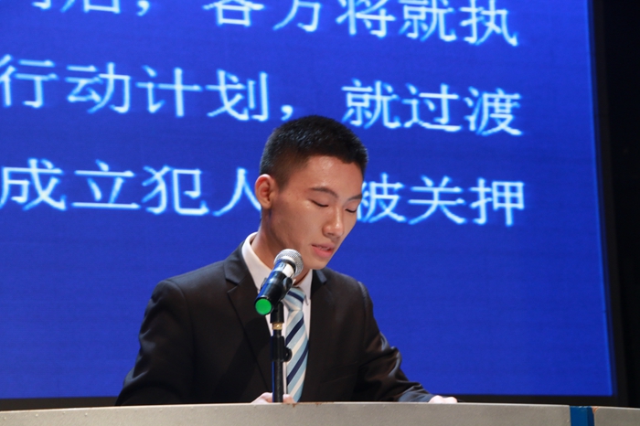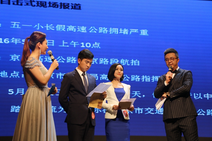 第三环节“直击现场”,由号数相近的选手两两一组,完成模拟现场报道。考察选手们的快速串写导语和现场报道能力。来自各大高校的选手们语言明快,临场反应迅速,很好地完成了各种类型的现场报道,赢得在场师生的一致好评。