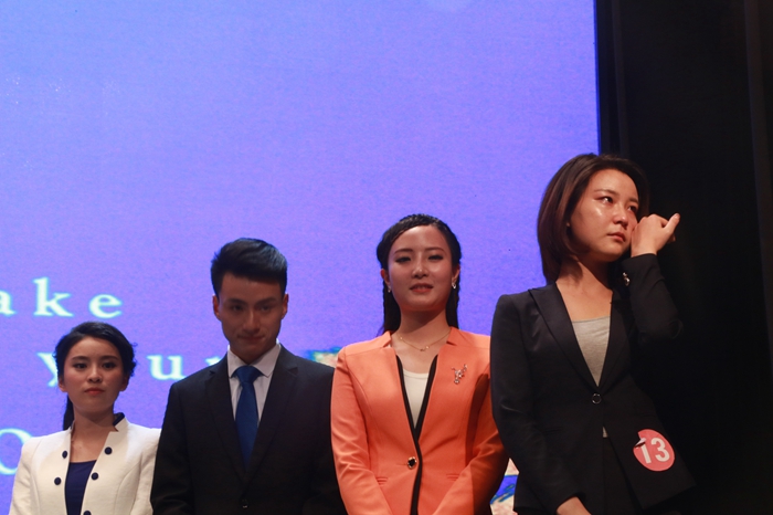 第四环节“数说新闻”,主要考察搭档的两位选手在限定时间内,对数据新闻的快速处理能力。经过前三轮的“淘汰赛”,仅4名选手晋级最终对决。选手王雅枫与戴小风表现相当出色,应变能力超赞,他们抽中题目“国内世界一流大学少,问题出在哪?”在没有准备时间、面对大量数据“干扰”的情况下,完成了一场“双FENG说新闻”的绝佳搭档主持。选手肖韶和朱治宇同样思维敏捷,快速地从繁杂的信息中提取重要信息,赢得了同学们的阵阵掌声。