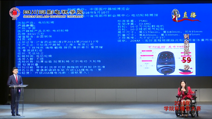 本次比赛特设的特别环节“我也当主播”,也就是“全场大点杀”更是将现场气氛推向高潮。“全场大点杀”一直是我院的教学考核传统项目,学生们每周都将经历这样残酷的“大点杀”,由台上老师随机抽取台下的同学上台进行即兴新闻播报。本环节由主持人随机现场抽取三名学生,早已“习以为常”的三位同学,面对点杀从容不迫,将紧张感和压力感化作动力,圆满地完成了即兴新闻播报。评委邢航老师表示,他对川影“全场大点杀”的印象十分深刻, “大点杀”作为学院的传统,培养了同学们沉着冷静的心态,让他体验到川影平时对学生的特色训练方式,认为这对提升学生的专业能力帮助巨大。