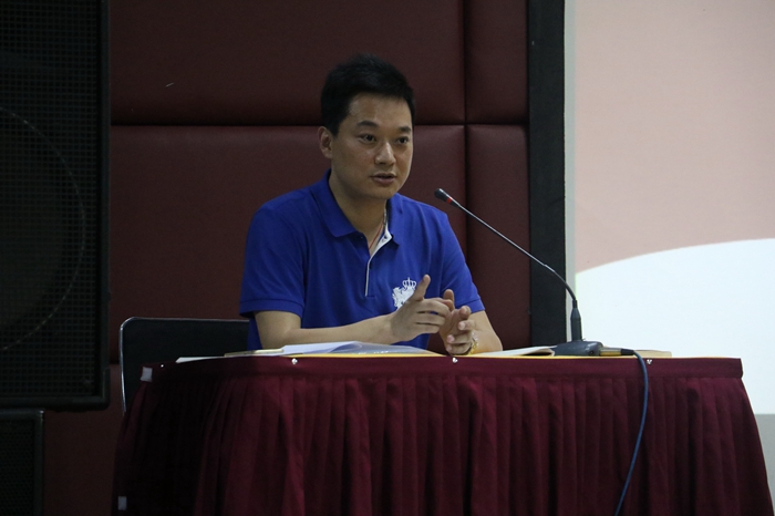 张老师认为,对于表演系学子来讲,说好普通话是最基本的要求。他介绍了普通话测试的内容:单音节字词、双音节字词、短文朗读和命题说话。普通话的标准分为三甲六等,他通过扣分细则与几项实例分析考取一甲时失分的原因:语音错误、语言不流畅、回读或漏读、语词生硬、语言错词过多、说话时间不足,在命题说话中所出现的逻辑不清、卡壳等。