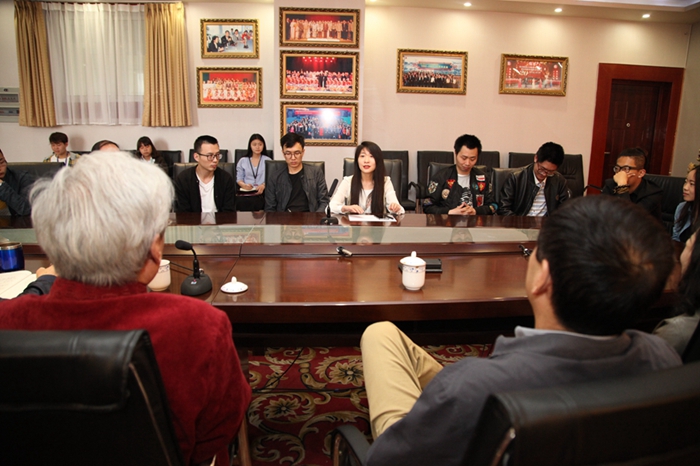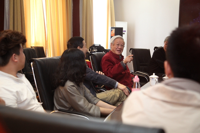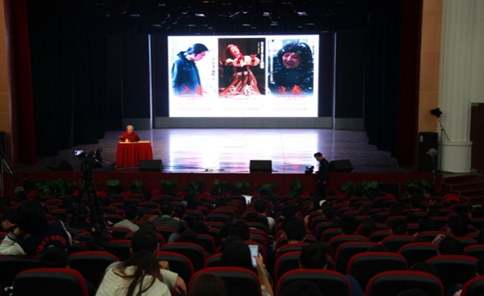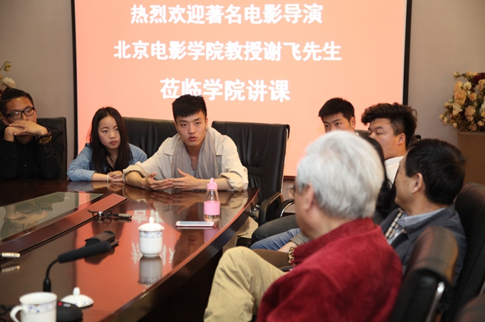 学生们首先观看谢老师的电影《香魂女》《黑骏马》,在贡院二楼会议室,谢老与导演系青年教师及尖子生展开座谈。座谈会上,谢老多次强调文学在影视创作中的重要性,并对学院提出许多宝贵意见及建议。他说,编导合一是不可阻挡的趋势,做“通导演”是必须要奋斗的目标,应当加强同学们的通史文学教育。同时,根据学院状况,有针对性地设置本科生和研究生的教育方法,本科抓基础,增加文化修养,培养“生产型人才”,将来在社会上才能立足,研究生进行高层次教学,精心培养影视界的优秀人才。