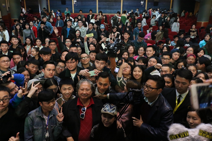 也有同学提问:“电影中您请到了‘七小福’和徐克、麦嘉、石天三位圈中‘老炮儿’,也请到了胡军、彭于晏、宋佳、冯绍峰等实力派和偶像派的加盟,您为什么会请他们呢?”说到这里洪爷哈哈大笑,幽默地回应:“因为我有实力啊!其实这样的影片温情又怀旧,请这些新朋和老友这主要是希望有真感情在影片中呈现出来,情谊很重要,聚在一起时感觉大家都还在年轻时。”