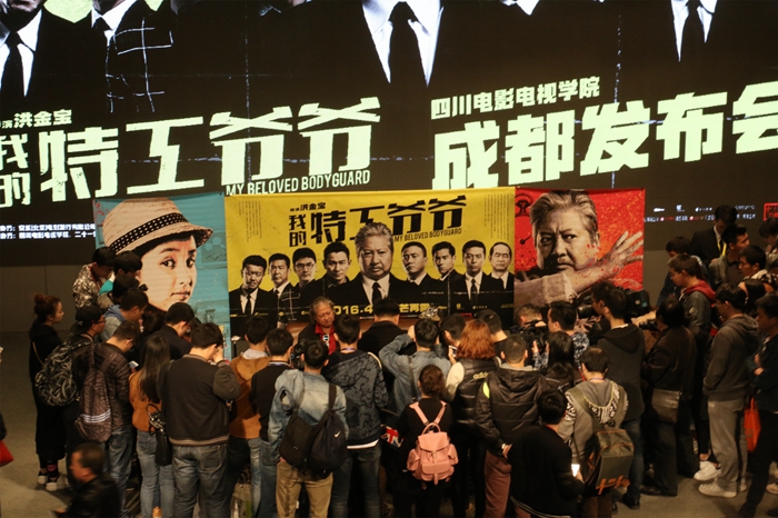 下午15:00,《我的特工爷爷》正式在川影金牛校区演播大剧场上演。同学们早早排起了长队,只为一睹洪爷和其最新电影的风采,川影宝宝们被影片中的家庭温情幽默和打戏的大片既视感所感染,不时发出笑声和掌声,沉醉其中的学生们表示十分喜欢“宝宝爷爷”的温情出演。值得一提的是,洪爷也和学生们一起观摩了电影呢!
