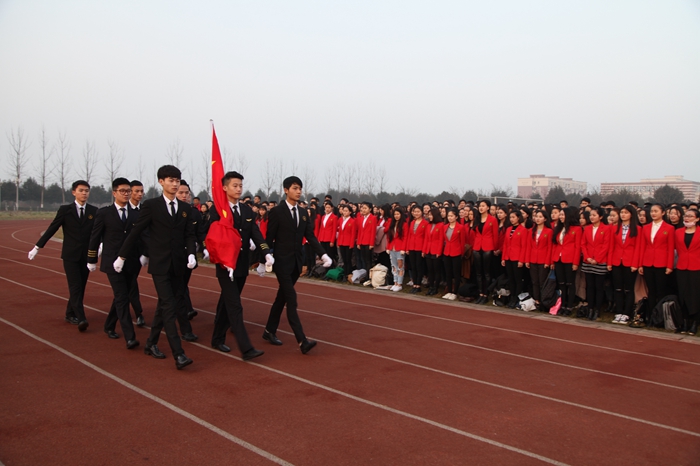 早上8点,一轮朝日冉冉升起,金色的光芒洒满大地,整个校园呈现出一派生机盎然的景象。参加升国旗仪式的师生们早早来到操场,站着整齐的队形,满怀激情迎接升旗仪式的开始。随着刘国富主任宣布:升国旗仪式开始,国旗护卫队员英姿飒爽,迈着矫健的步伐护卫着五星红旗走向升旗台。当嘹亮的国歌声响起,鲜艳的五星红旗,伴着朝霞,沐浴着晨风,在阳光下升起时,全体师生员工庄严的向五星红旗行注目礼,祝愿我们的祖国更加繁荣昌盛,祝愿我们的学院更加辉煌!