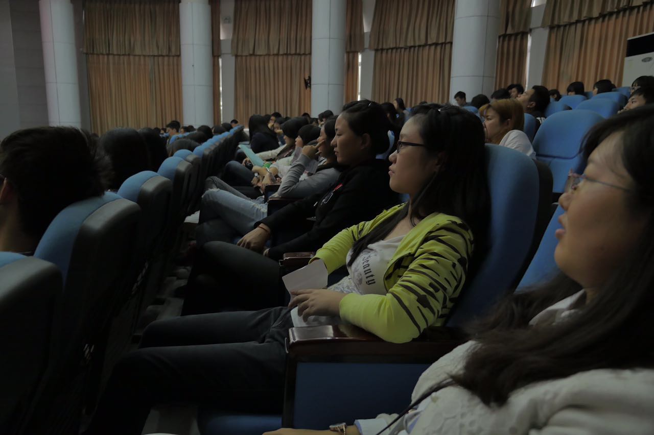 该院党委副书记朱毓高向在座隆重介绍邓骏,随后《分手事务所》在厅内放映,台下同学们时而欢笑不断,时而讨论揣测。每当片中“流浪歌手”出场均博得认同的尖叫声与欢呼声,放映结束后持续十余秒的掌声,更是对《分手事务所》的大力肯定。